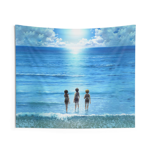 3 friends contemplating the ocean Indoor Wall Tapestry