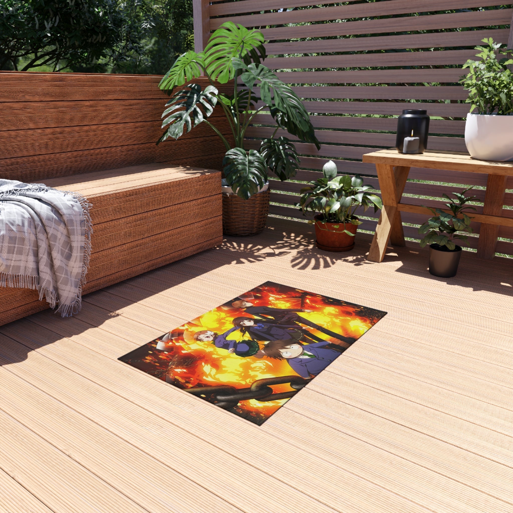 This area rug is crafted with durable construction and hemmed edges, offering lasting quality and style. A coated backing keeps the piece in place, making it the perfect finishing touch for any interior design. Vibrant colors and anime allow you to effortlessly match your existing aesthetic.