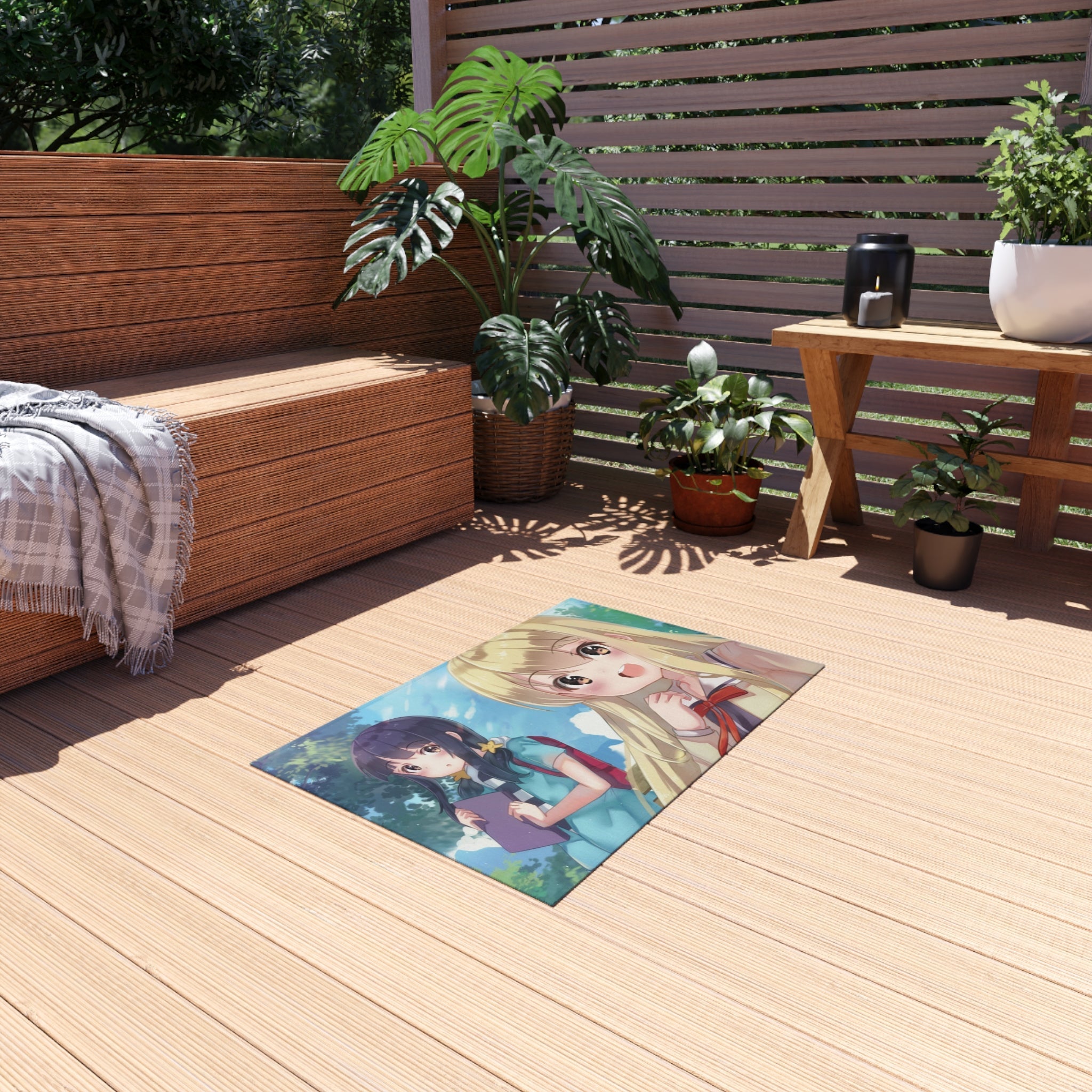 This area rug is crafted with durable construction and hemmed edges, offering lasting quality and style. A coated backing keeps the piece in place, making it the perfect finishing touch for any interior design. Vibrant colors and anime allow you to effortlessly match your existing aesthetic.