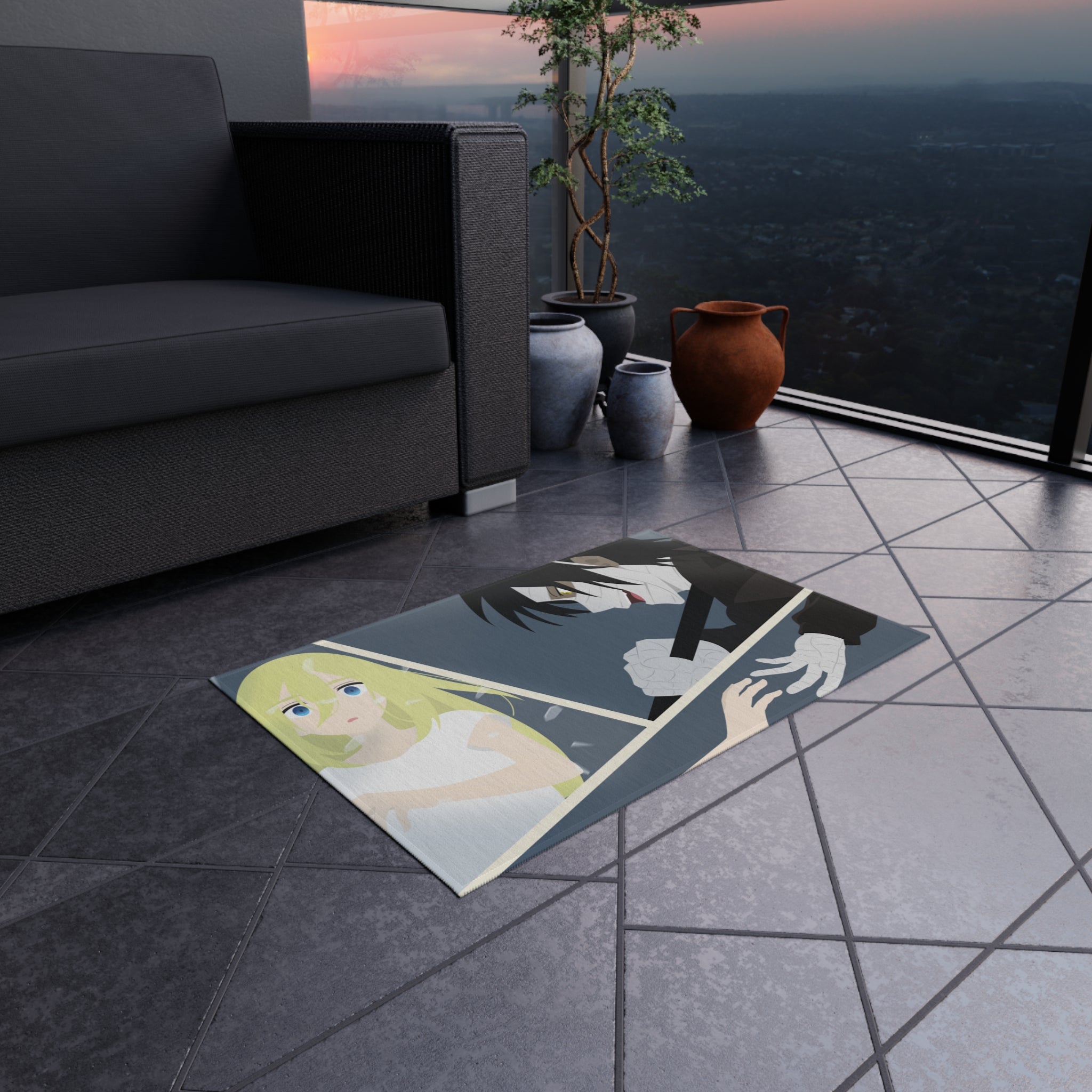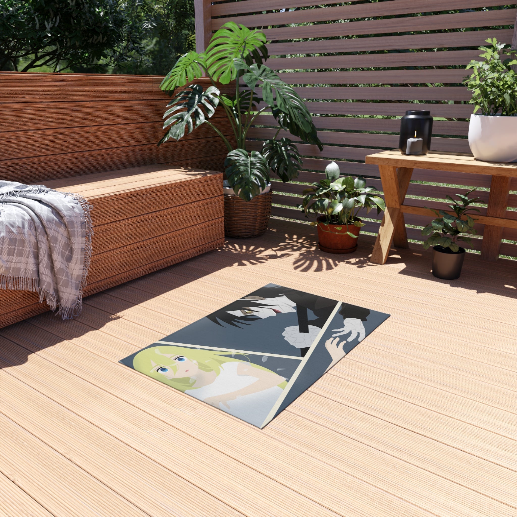 This area rug is crafted with durable construction and hemmed edges, offering lasting quality and style. A coated backing keeps the piece in place, making it the perfect finishing touch for any interior design. Vibrant colors and anime allow you to effortlessly match your existing aesthetic.