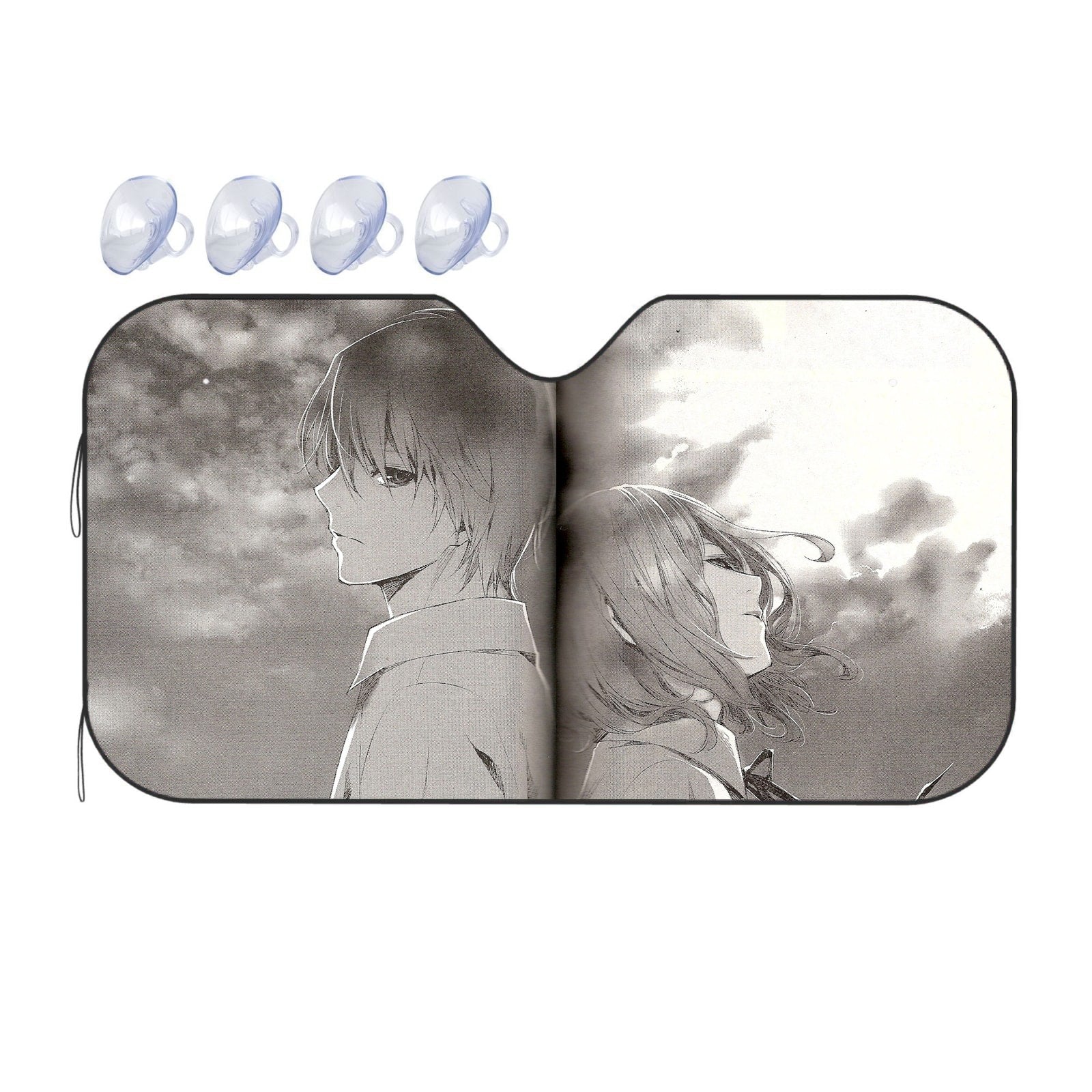 Showcase your favorite anime and protect your car's interior with this premium sunshade that blends vibrant fan art with essential protection.