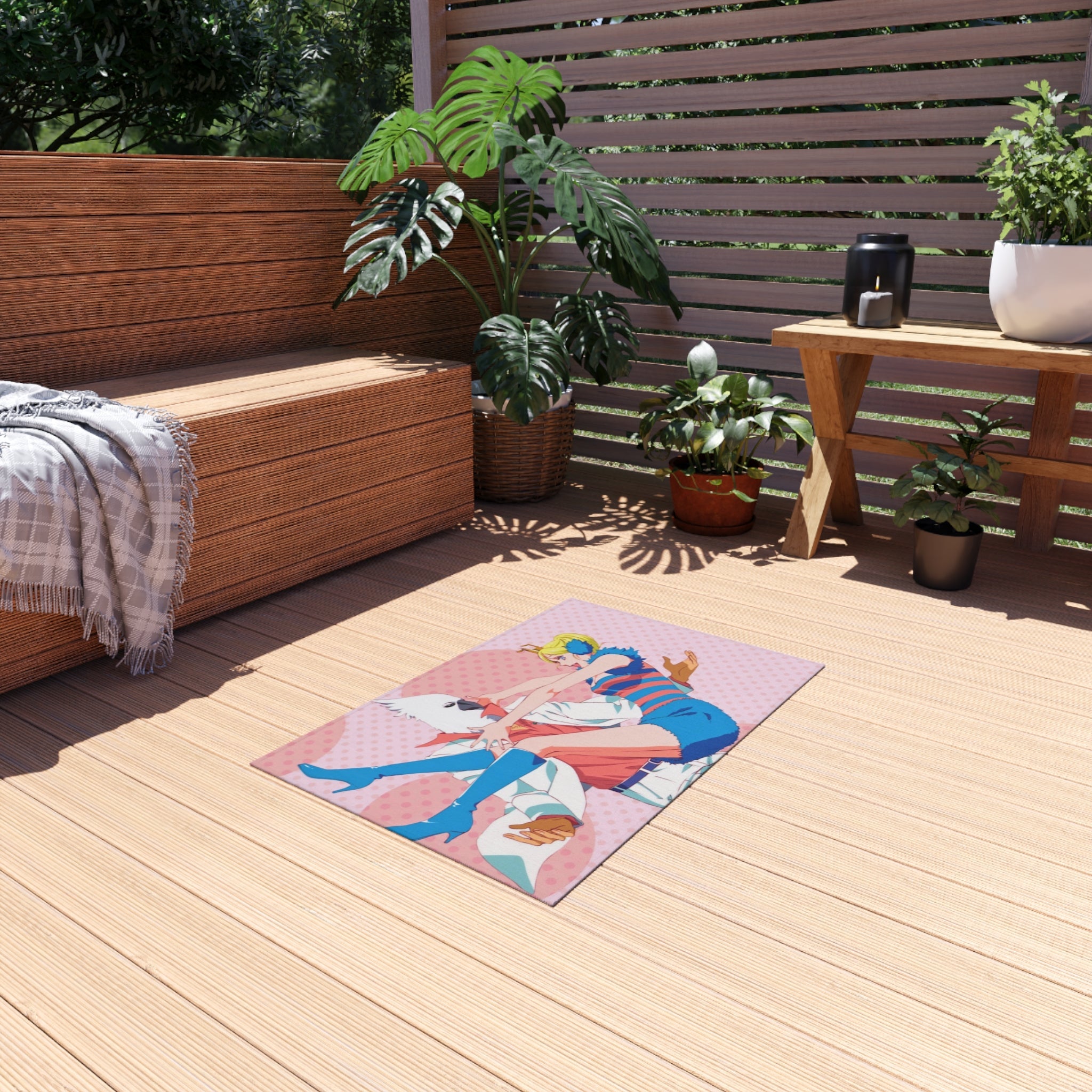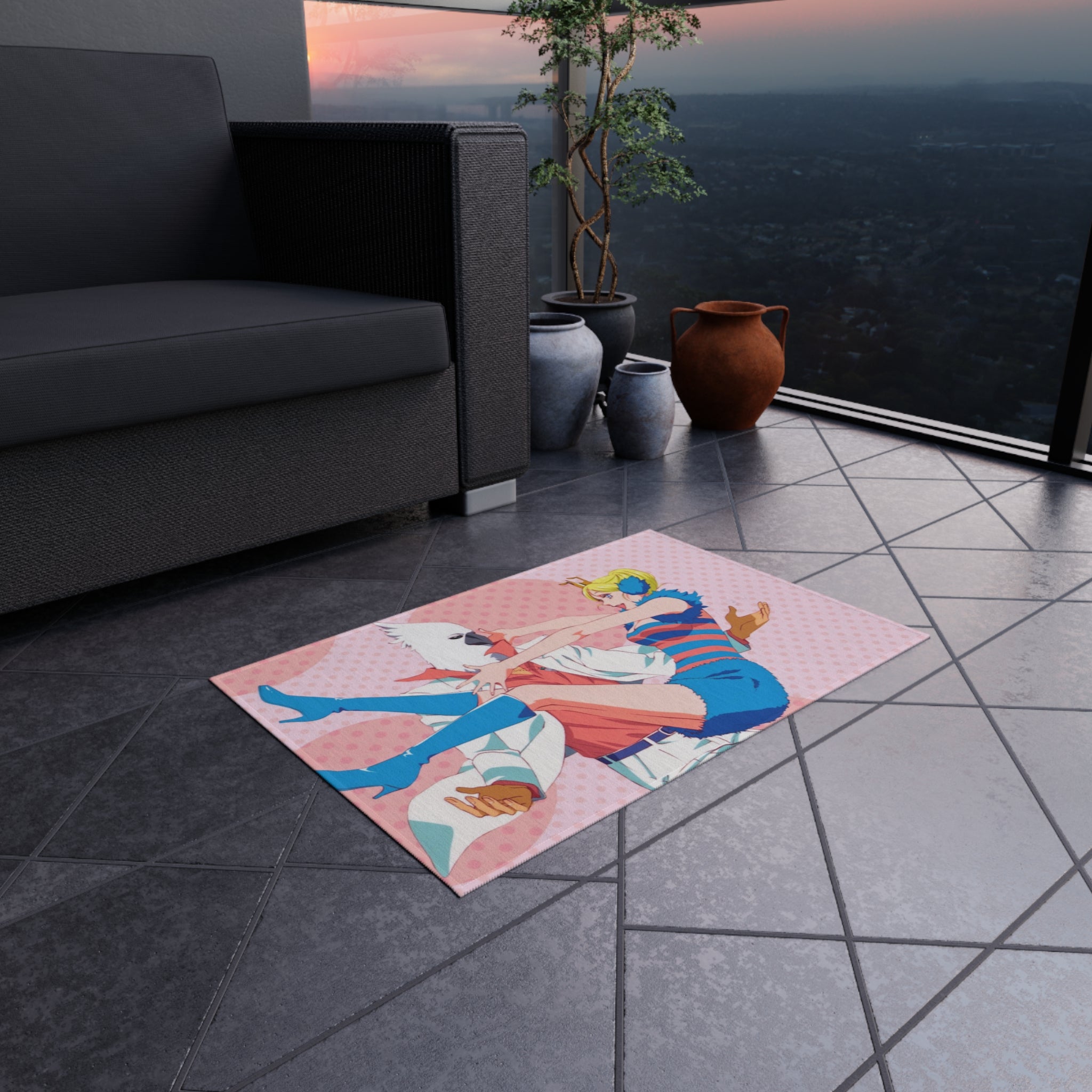 This area rug is crafted with durable construction and hemmed edges, offering lasting quality and style. A coated backing keeps the piece in place, making it the perfect finishing touch for any interior design. Vibrant colors and anime allow you to effortlessly match your existing aesthetic.