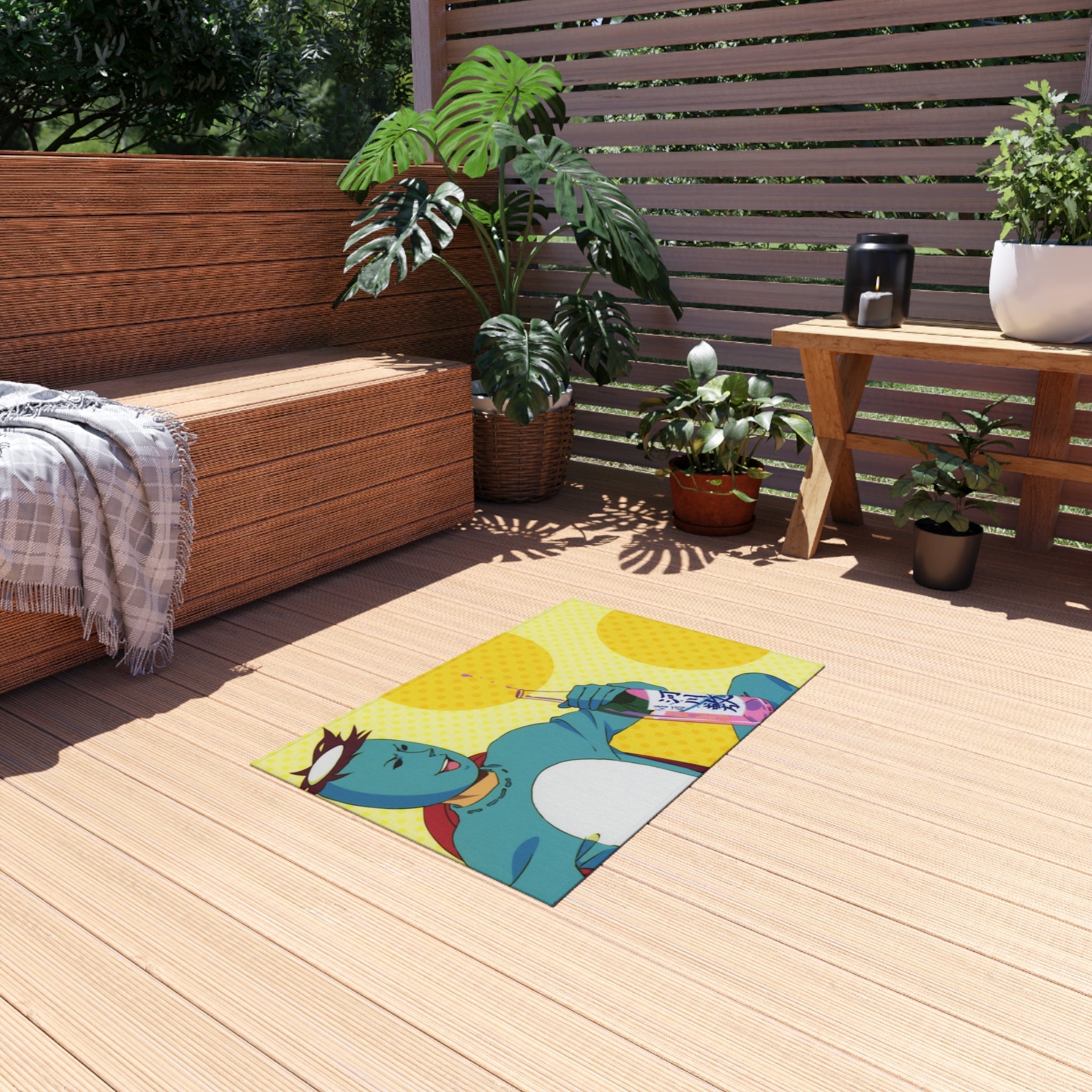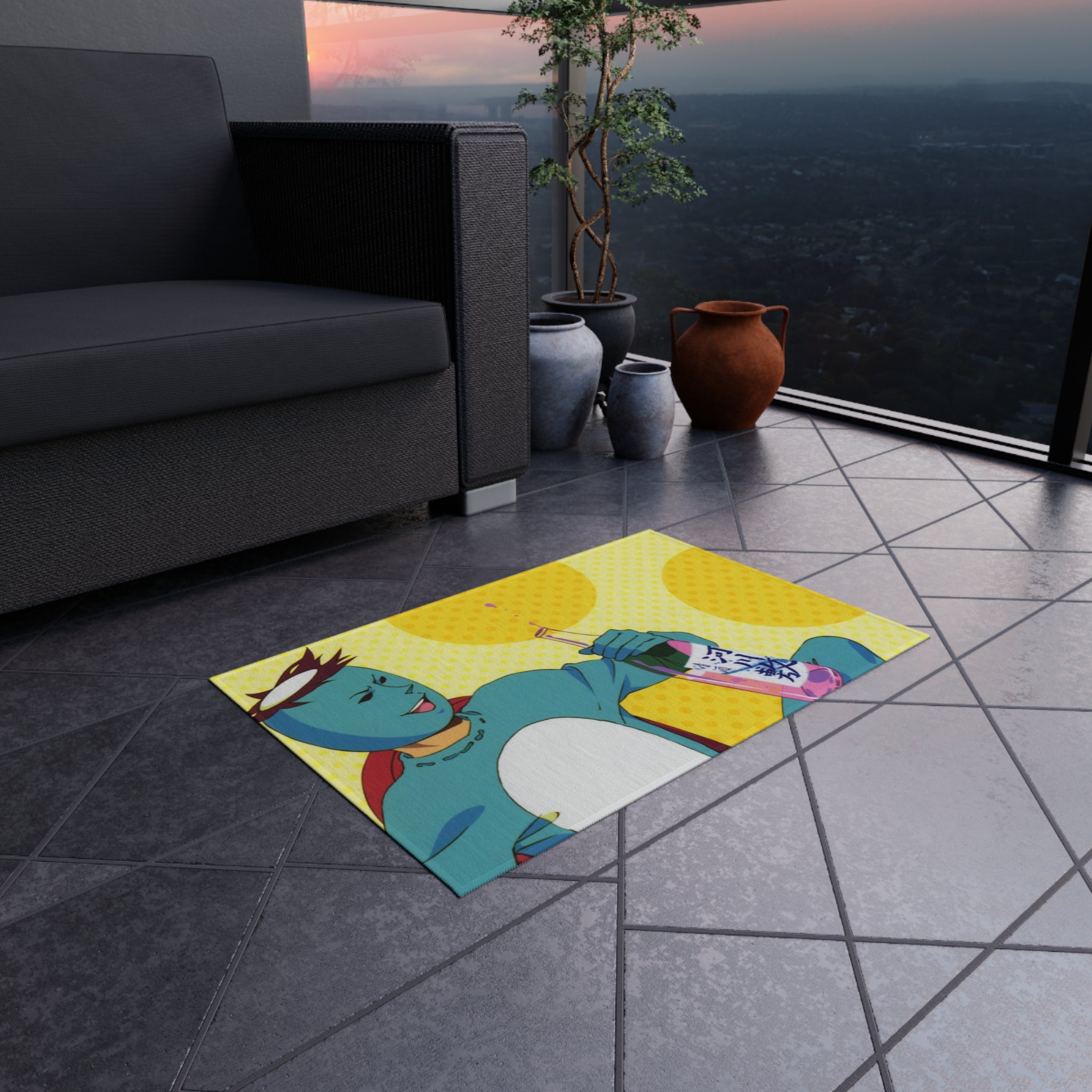 This area rug is crafted with durable construction and hemmed edges, offering lasting quality and style. A coated backing keeps the piece in place, making it the perfect finishing touch for any interior design. Vibrant colors and anime allow you to effortlessly match your existing aesthetic.
