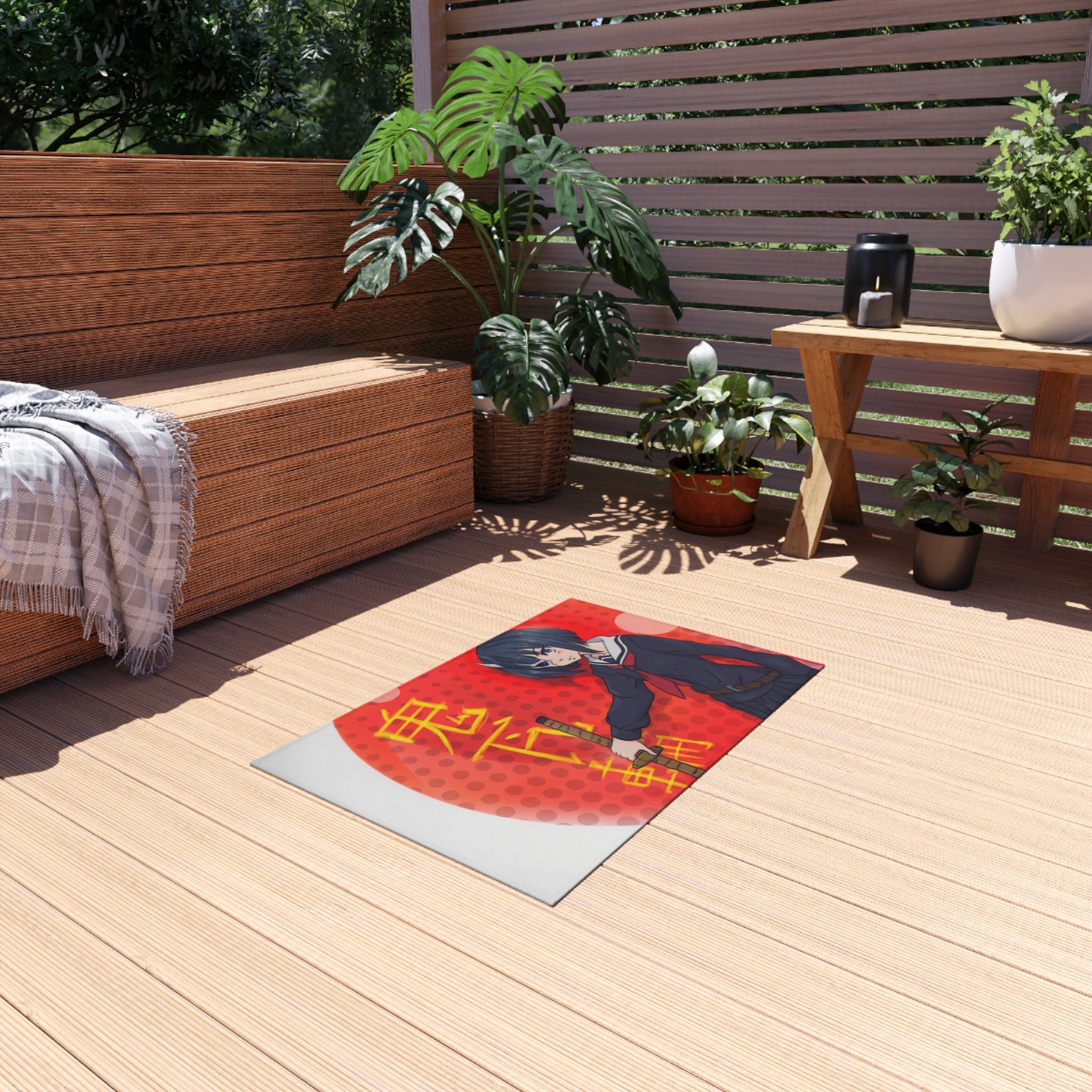 This area rug is crafted with durable construction and hemmed edges, offering lasting quality and style. A coated backing keeps the piece in place, making it the perfect finishing touch for any interior design. Vibrant colors and anime allow you to effortlessly match your existing aesthetic.