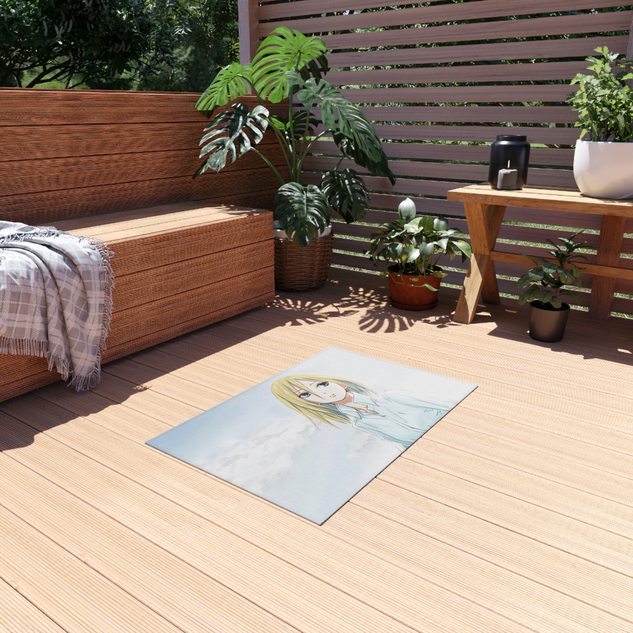 This area rug is crafted with durable construction and hemmed edges, offering lasting quality and style. A coated backing keeps the piece in place, making it the perfect finishing touch for any interior design. Vibrant colors and anime allow you to effortlessly match your existing aesthetic.