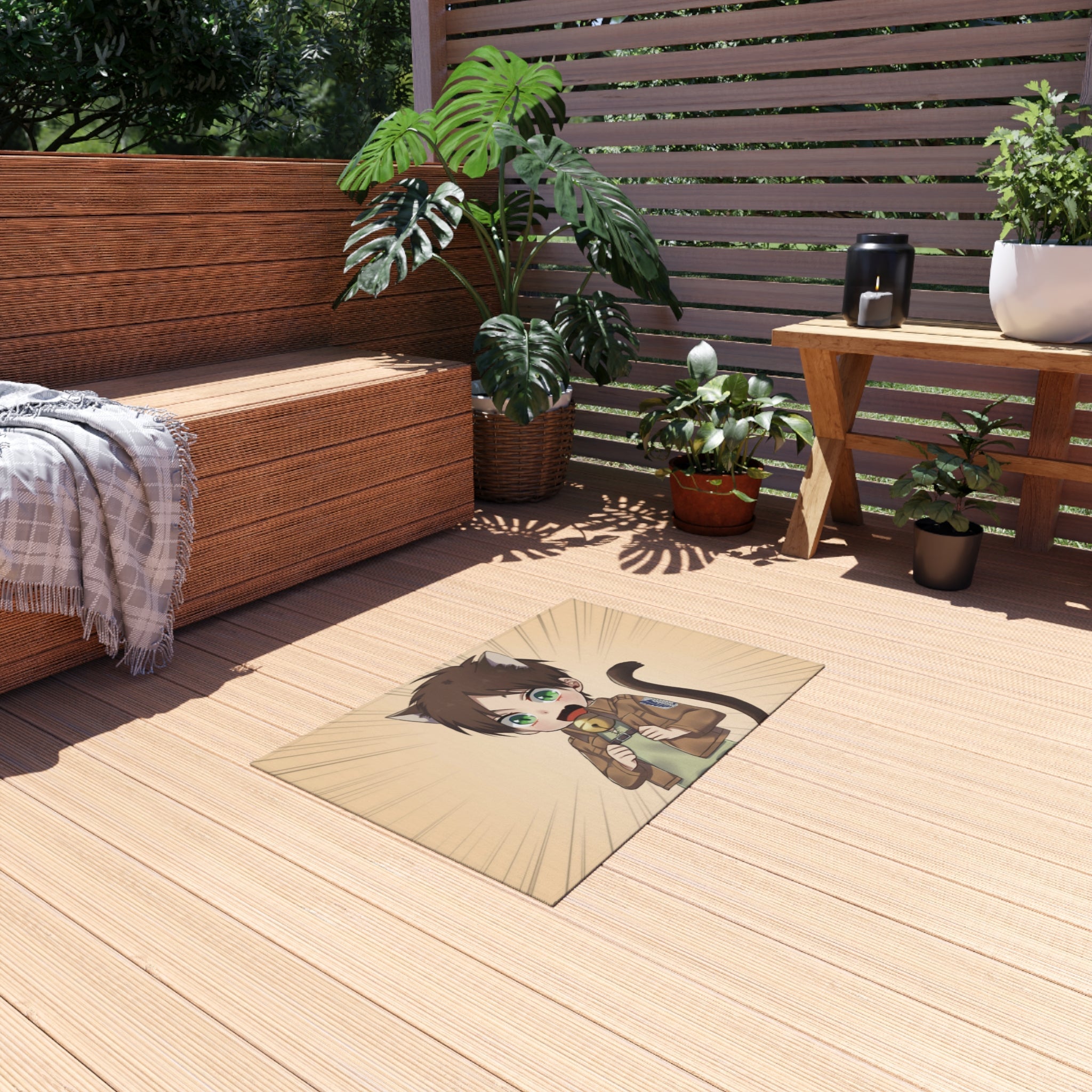 This area rug is crafted with durable construction and hemmed edges, offering lasting quality and style. A coated backing keeps the piece in place, making it the perfect finishing touch for any interior design. Vibrant colors and anime allow you to effortlessly match your existing aesthetic.