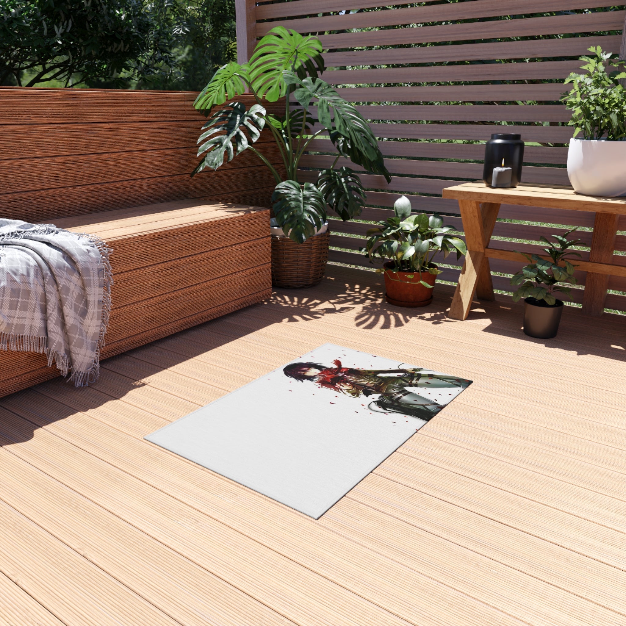 This area rug is crafted with durable construction and hemmed edges, offering lasting quality and style. A coated backing keeps the piece in place, making it the perfect finishing touch for any interior design. Vibrant colors and anime allow you to effortlessly match your existing aesthetic.