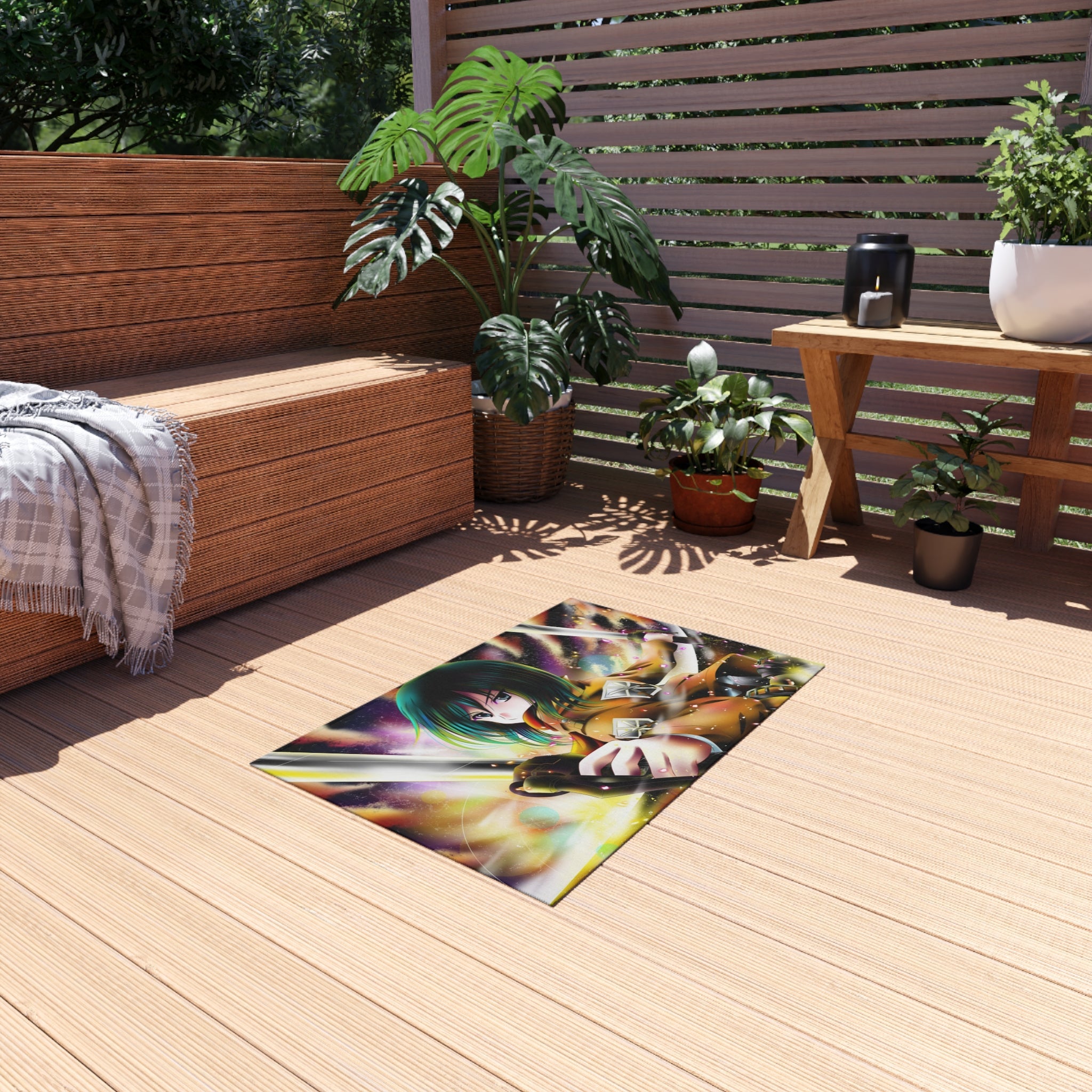 This area rug is crafted with durable construction and hemmed edges, offering lasting quality and style. A coated backing keeps the piece in place, making it the perfect finishing touch for any interior design. Vibrant colors and anime allow you to effortlessly match your existing aesthetic.