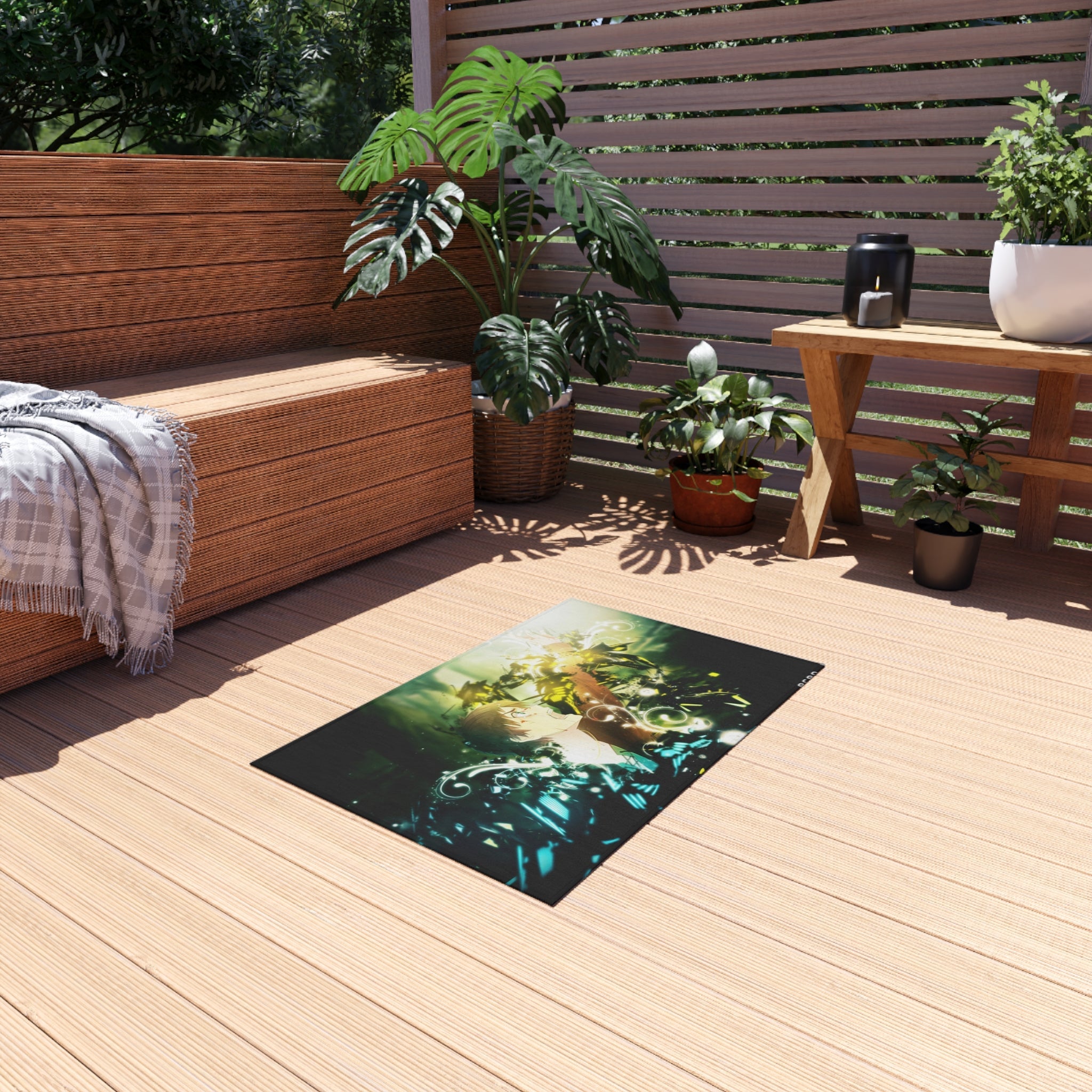 This area rug is crafted with durable construction and hemmed edges, offering lasting quality and style. A coated backing keeps the piece in place, making it the perfect finishing touch for any interior design. Vibrant colors and anime allow you to effortlessly match your existing aesthetic.