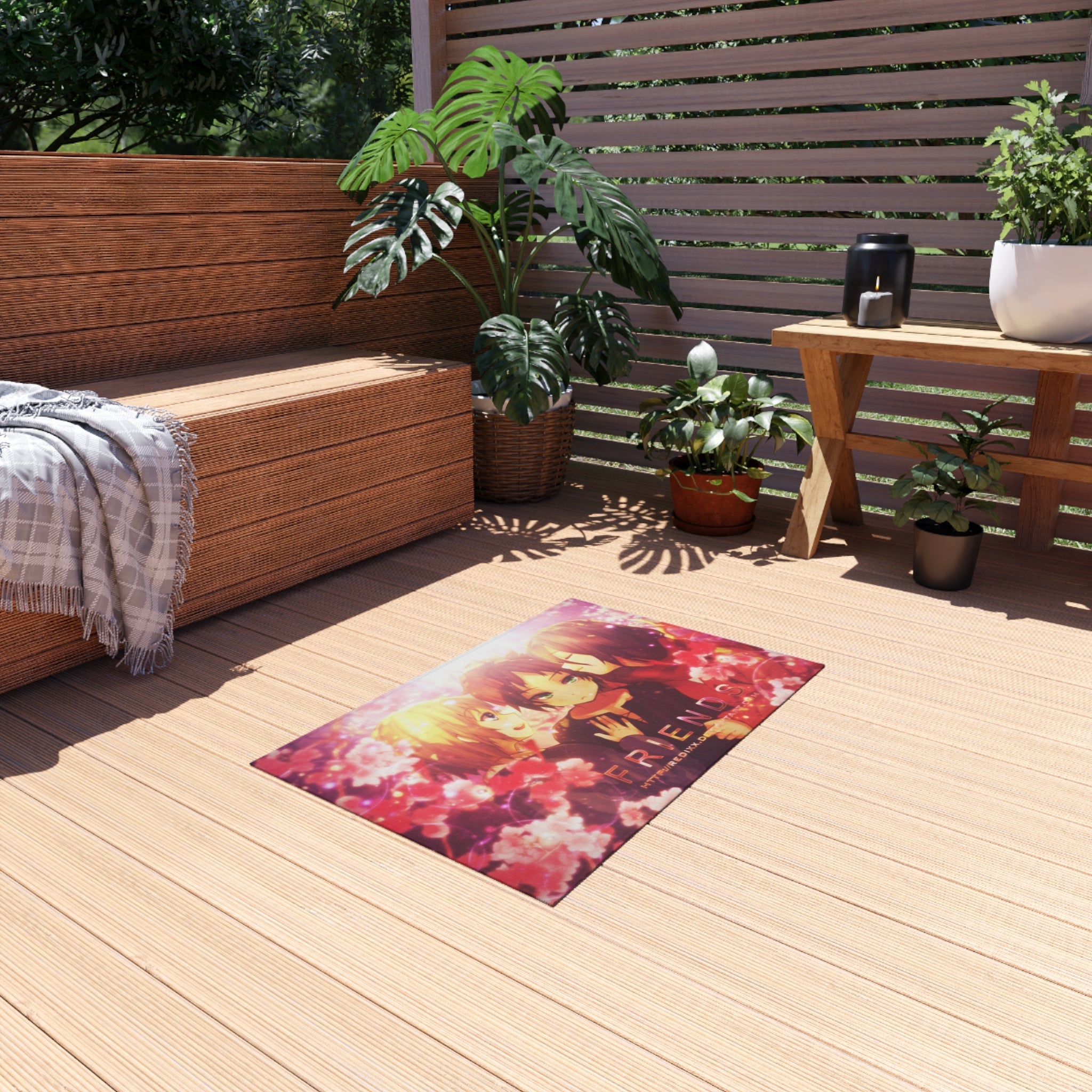 This area rug is crafted with durable construction and hemmed edges, offering lasting quality and style. A coated backing keeps the piece in place, making it the perfect finishing touch for any interior design. Vibrant colors and anime allow you to effortlessly match your existing aesthetic.