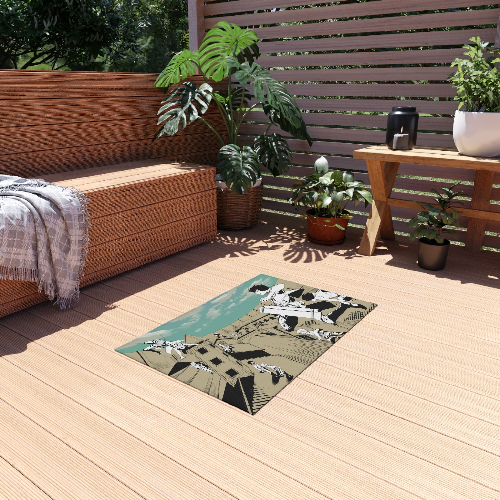 This area rug is crafted with durable construction and hemmed edges, offering lasting quality and style. A coated backing keeps the piece in place, making it the perfect finishing touch for any interior design. Vibrant colors and anime allow you to effortlessly match your existing aesthetic.