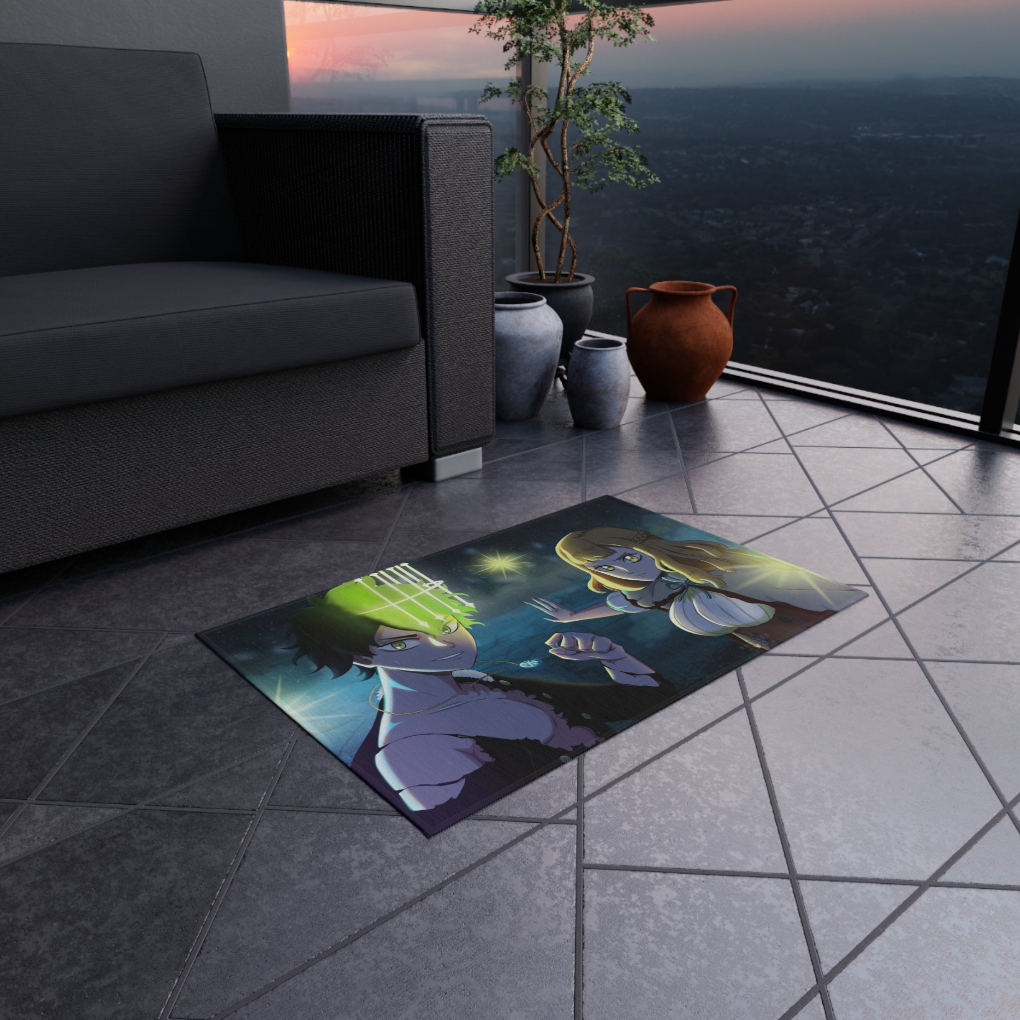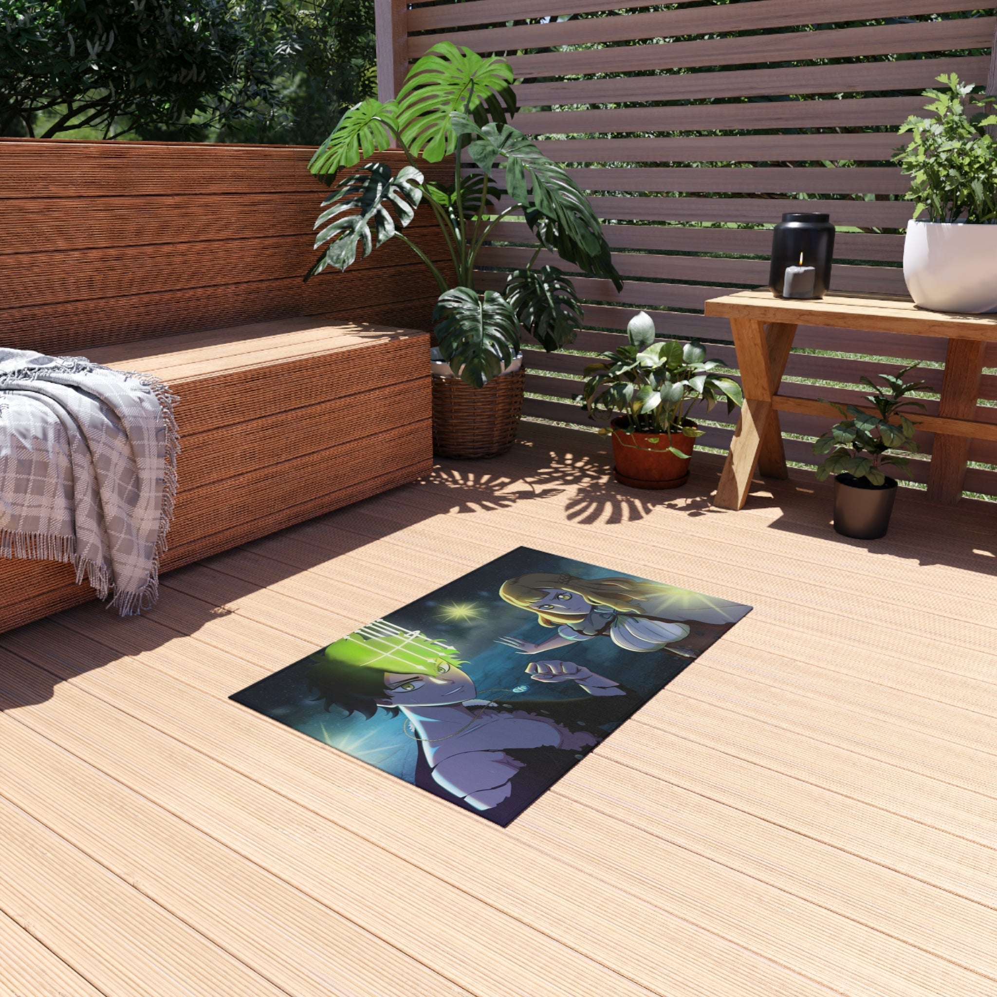 This area rug is crafted with durable construction and hemmed edges, offering lasting quality and style. A coated backing keeps the piece in place, making it the perfect finishing touch for any interior design. Vibrant colors and anime allow you to effortlessly match your existing aesthetic.