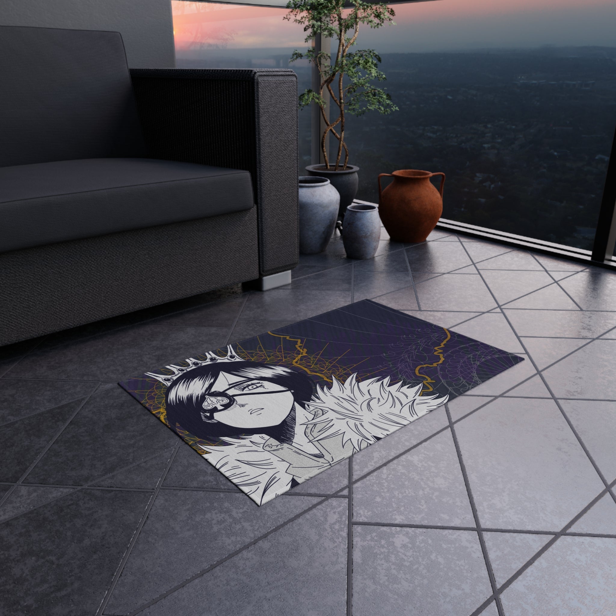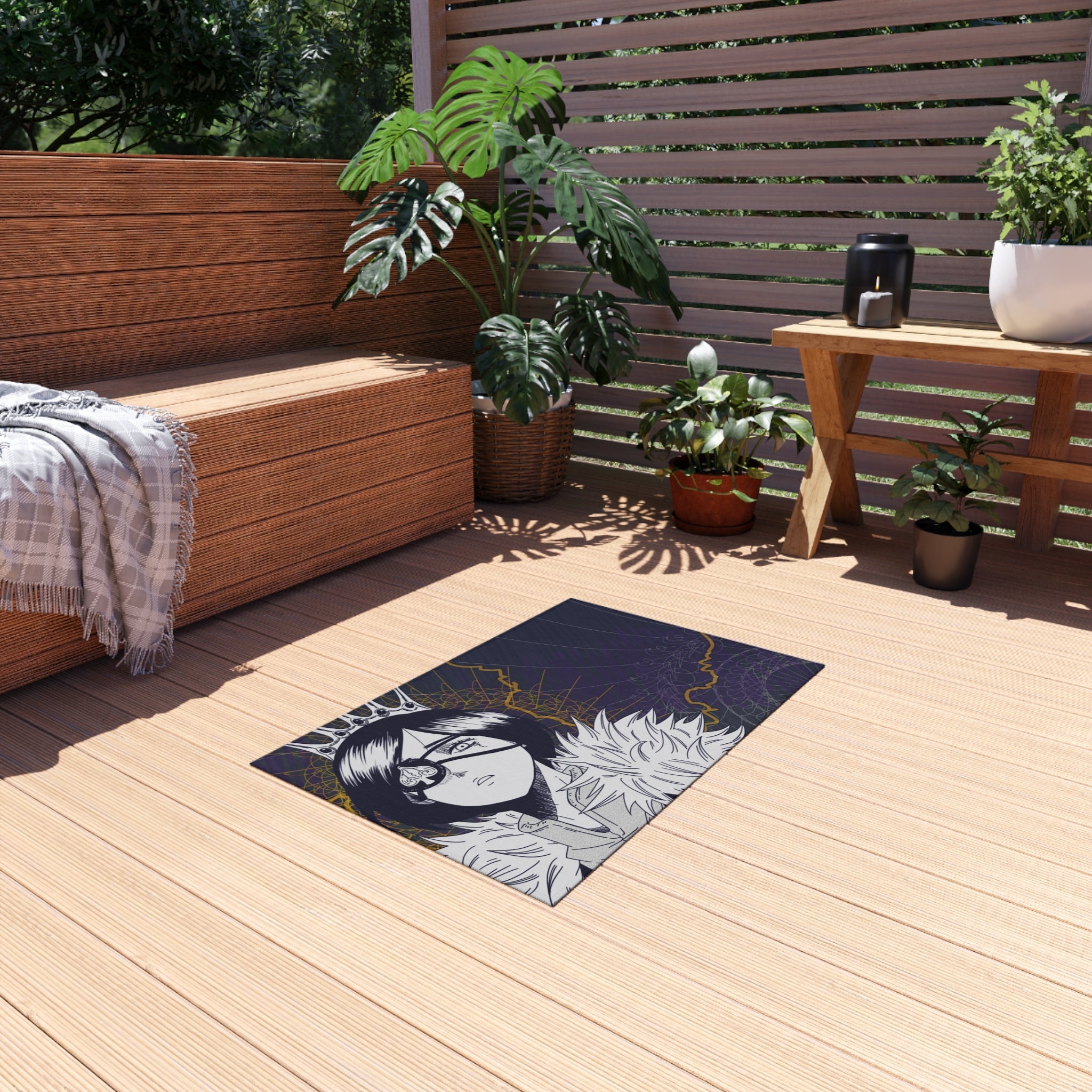 This area rug is crafted with durable construction and hemmed edges, offering lasting quality and style. A coated backing keeps the piece in place, making it the perfect finishing touch for any interior design. Vibrant colors and anime allow you to effortlessly match your existing aesthetic.