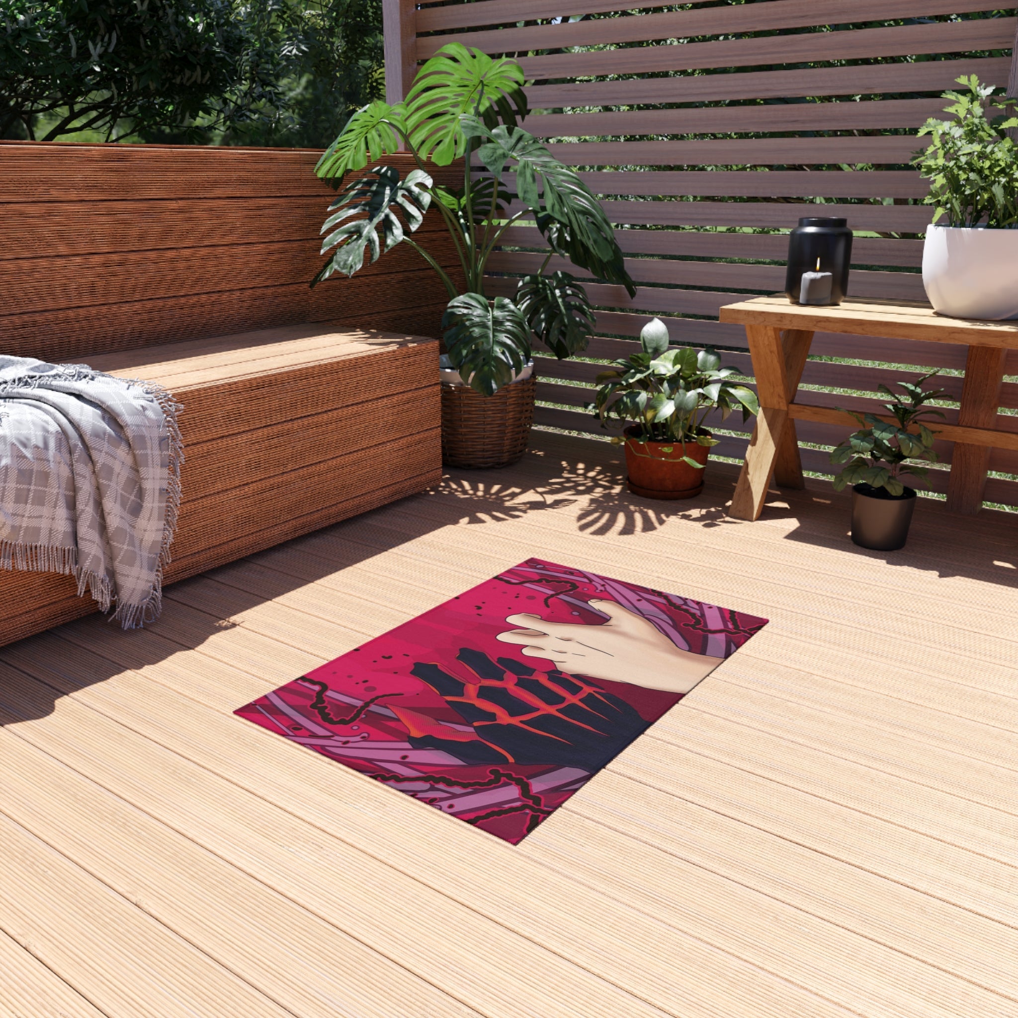 This area rug is crafted with durable construction and hemmed edges, offering lasting quality and style. A coated backing keeps the piece in place, making it the perfect finishing touch for any interior design. Vibrant colors and anime allow you to effortlessly match your existing aesthetic.