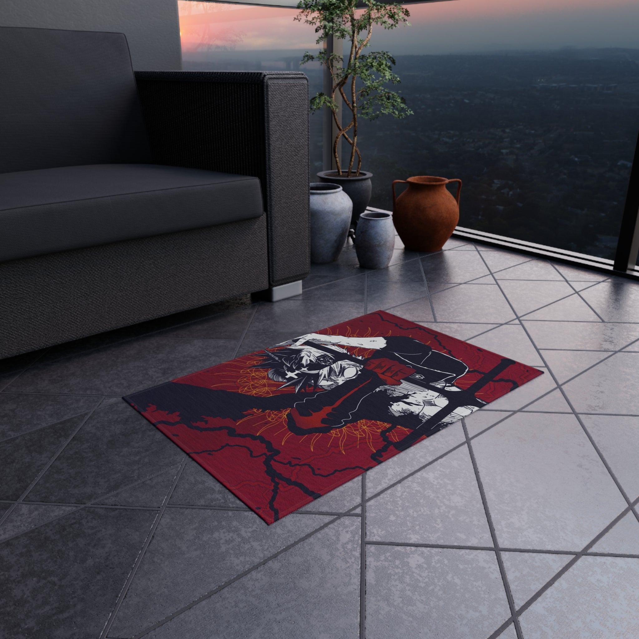 This area rug is crafted with durable construction and hemmed edges, offering lasting quality and style. A coated backing keeps the piece in place, making it the perfect finishing touch for any interior design. Vibrant colors and anime allow you to effortlessly match your existing aesthetic.