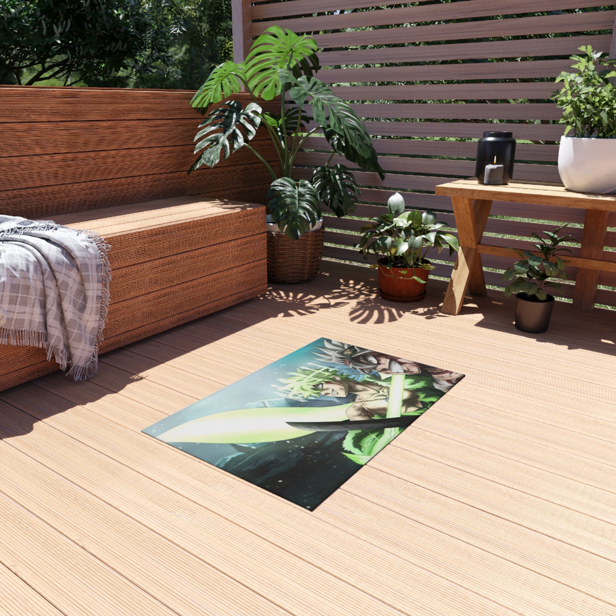This area rug is crafted with durable construction and hemmed edges, offering lasting quality and style. A coated backing keeps the piece in place, making it the perfect finishing touch for any interior design. Vibrant colors and anime allow you to effortlessly match your existing aesthetic.