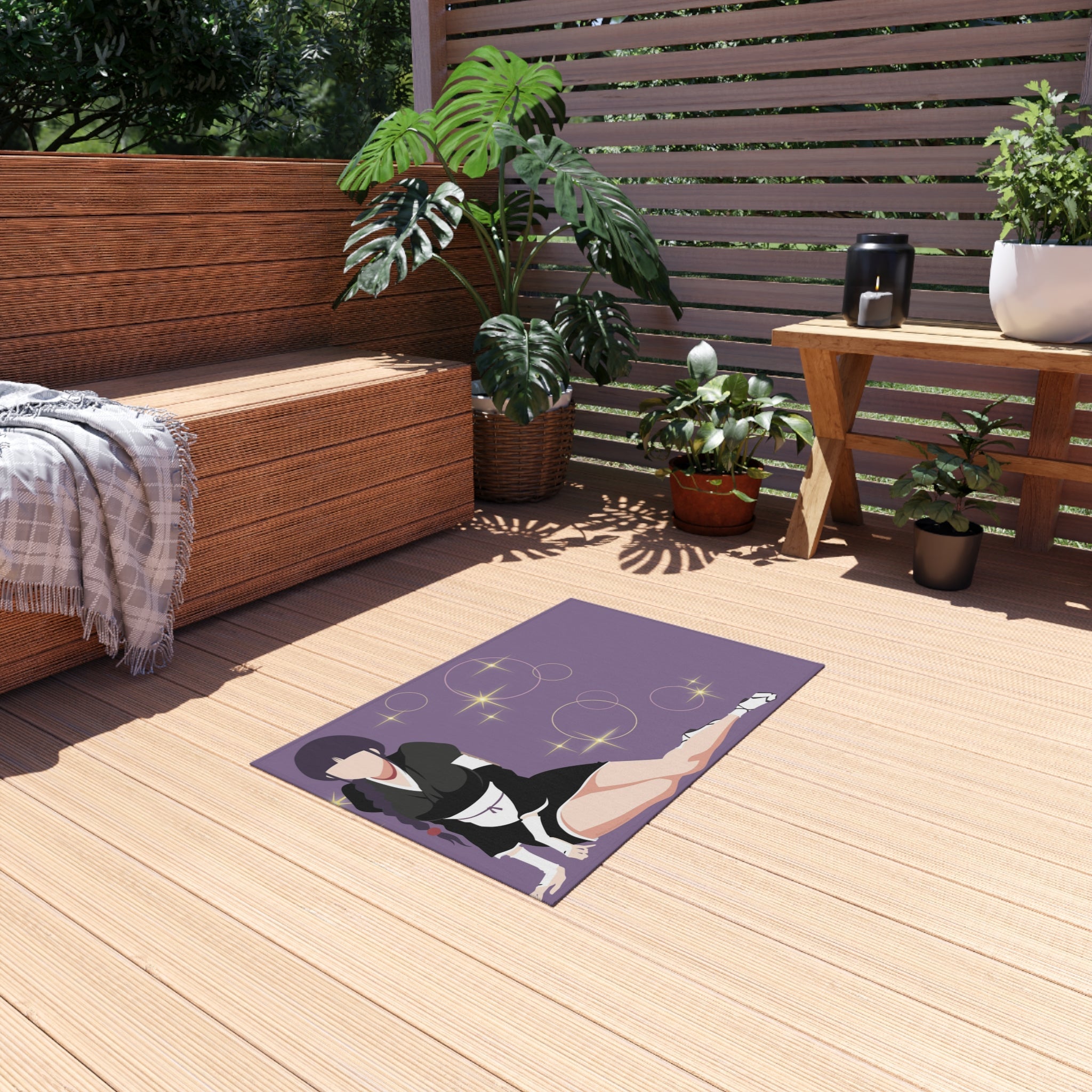 This area rug is crafted with durable construction and hemmed edges, offering lasting quality and style. A coated backing keeps the piece in place, making it the perfect finishing touch for any interior design. Vibrant colors and anime allow you to effortlessly match your existing aesthetic.