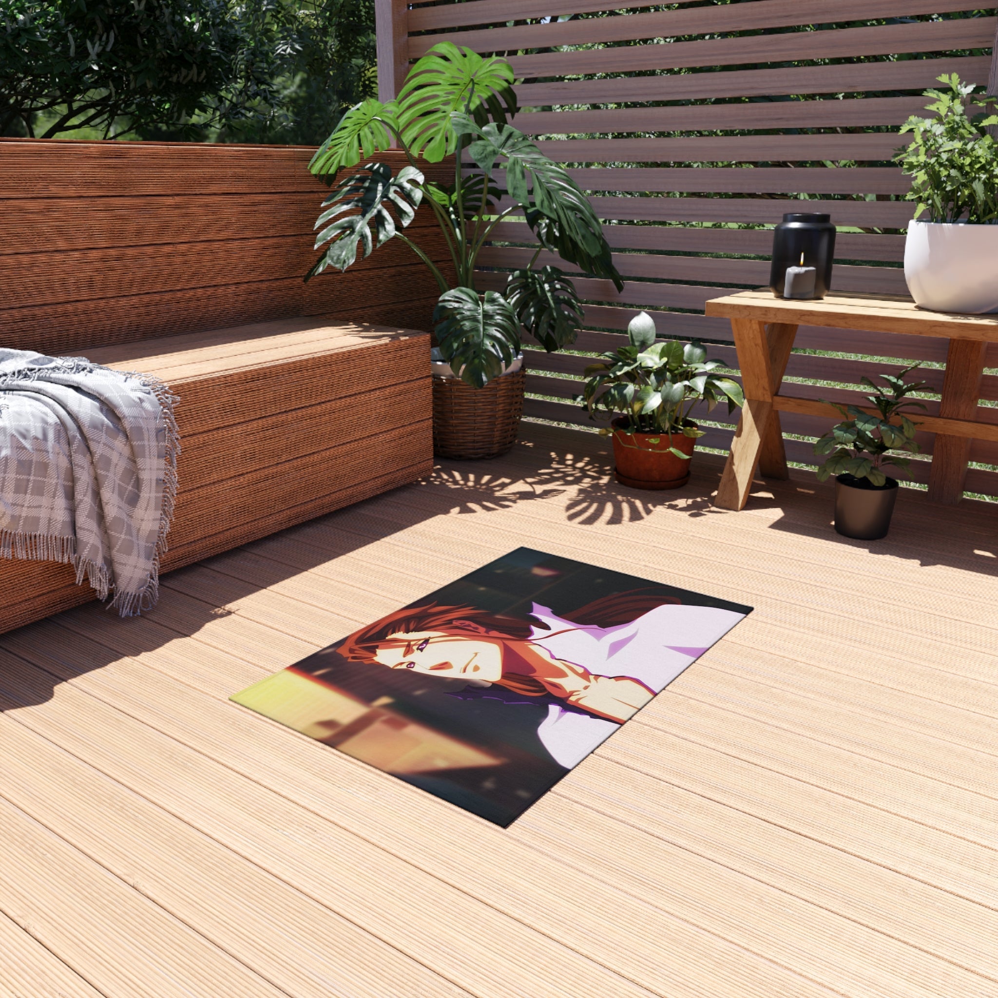 This area rug is crafted with durable construction and hemmed edges, offering lasting quality and style. A coated backing keeps the piece in place, making it the perfect finishing touch for any interior design. Vibrant colors and anime allow you to effortlessly match your existing aesthetic.