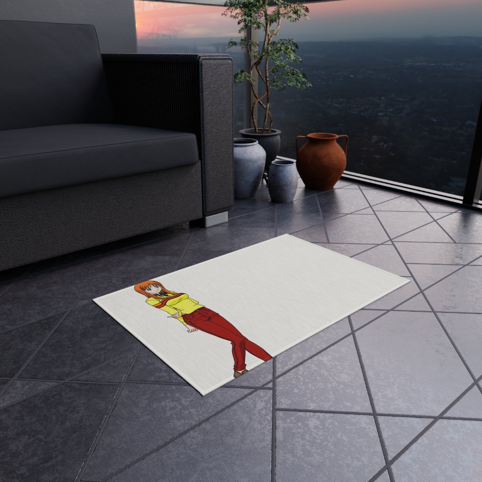 This area rug is crafted with durable construction and hemmed edges, offering lasting quality and style. A coated backing keeps the piece in place, making it the perfect finishing touch for any interior design. Vibrant colors and anime allow you to effortlessly match your existing aesthetic.