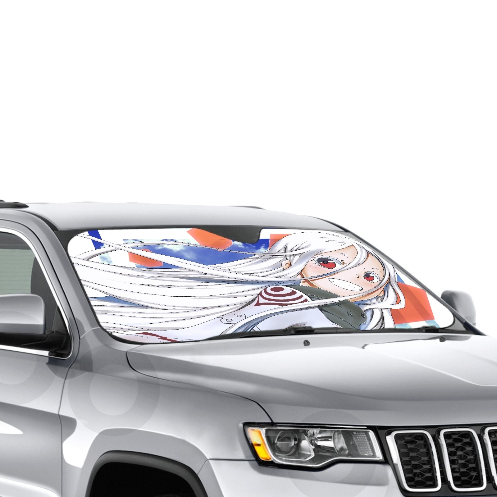 Showcase your favorite anime and protect your car's interior with this premium sunshade that blends vibrant fan art with essential protection.