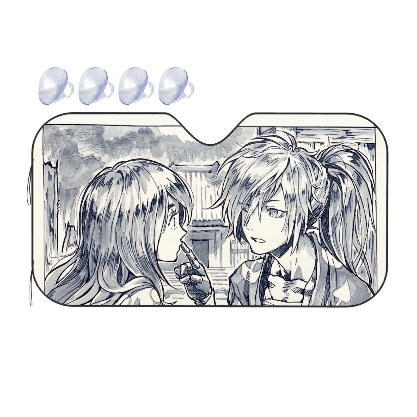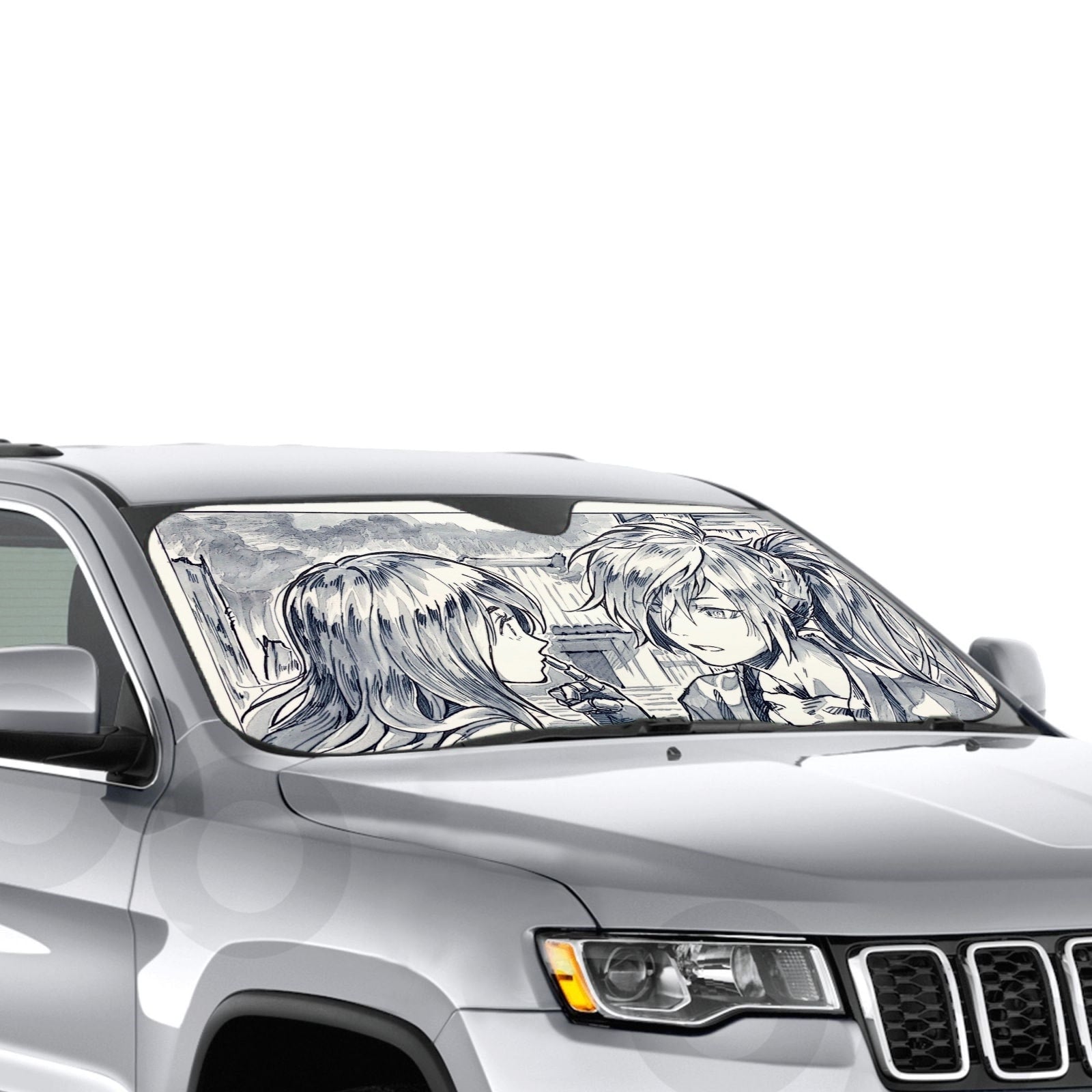 Showcase your favorite anime and protect your car's interior with this premium sunshade that blends vibrant fan art with essential protection.