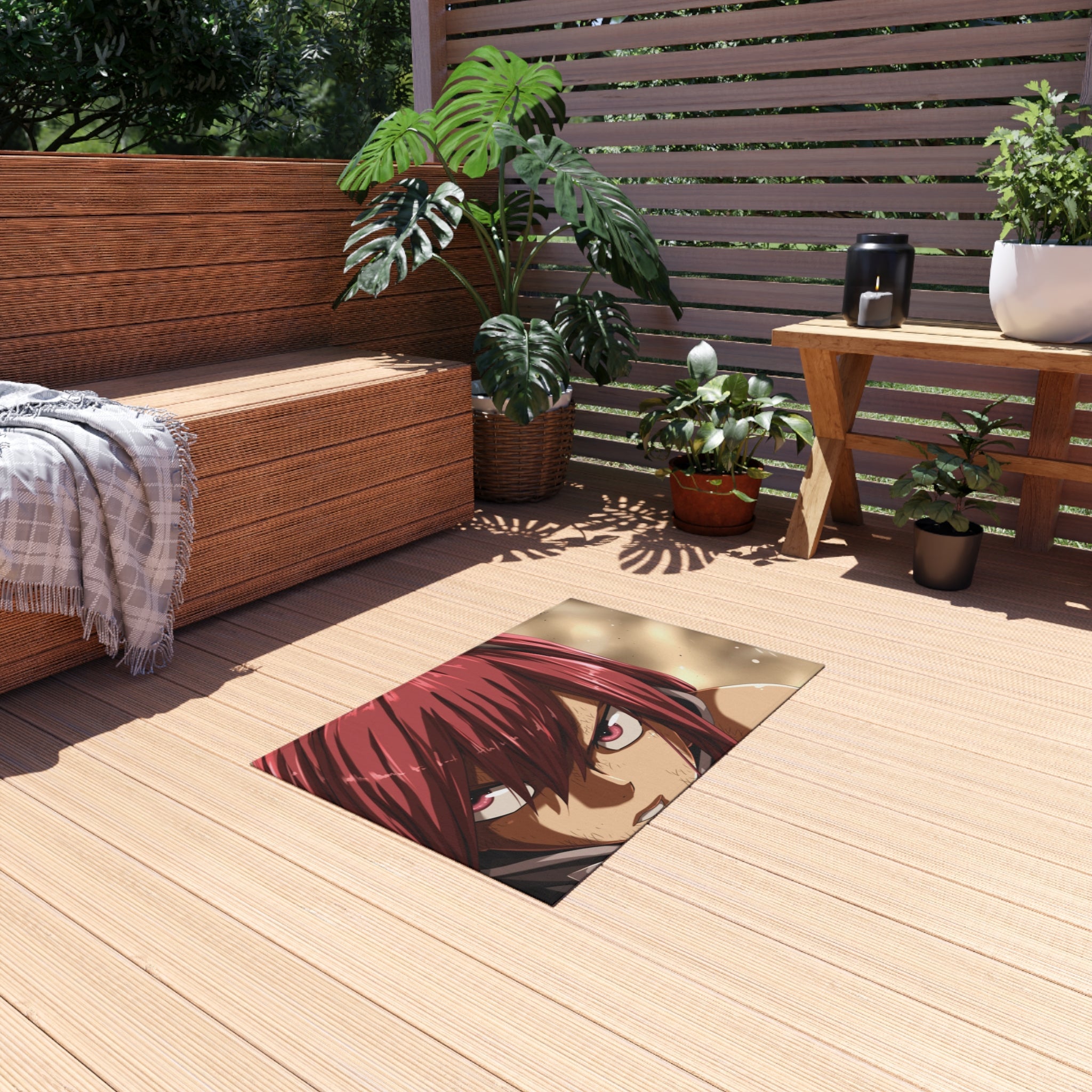 This area rug is crafted with durable construction and hemmed edges, offering lasting quality and style. A coated backing keeps the piece in place, making it the perfect finishing touch for any interior design. Vibrant colors and anime allow you to effortlessly match your existing aesthetic.