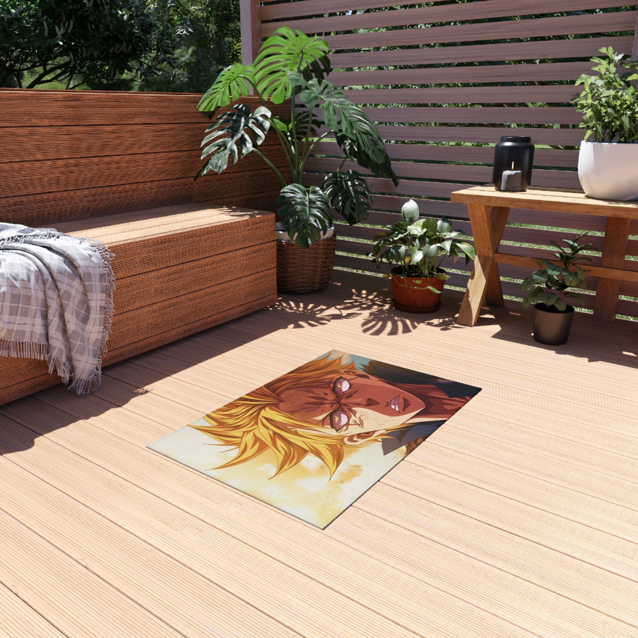 This area rug is crafted with durable construction and hemmed edges, offering lasting quality and style. A coated backing keeps the piece in place, making it the perfect finishing touch for any interior design. Vibrant colors and anime allow you to effortlessly match your existing aesthetic.