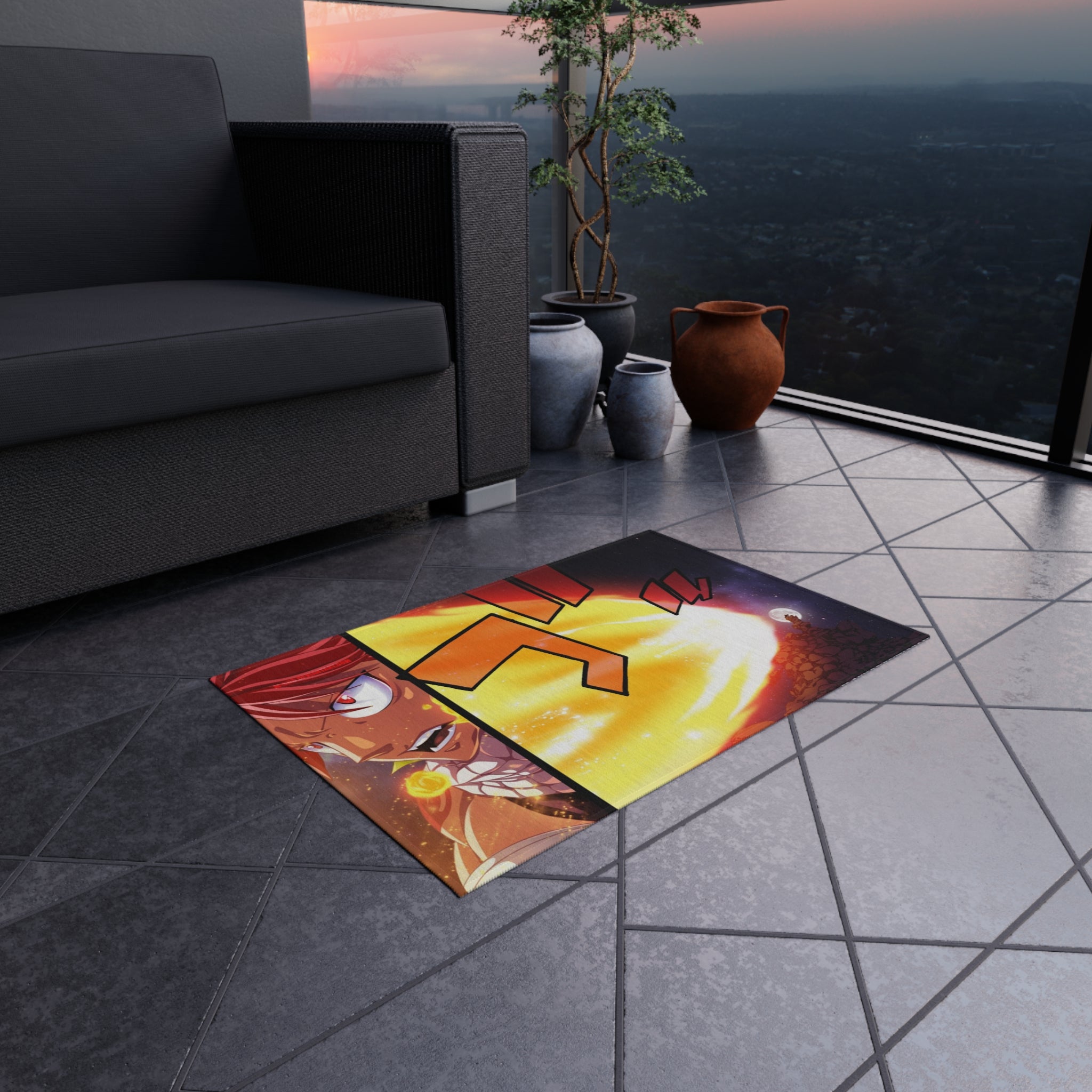 This area rug is crafted with durable construction and hemmed edges, offering lasting quality and style. A coated backing keeps the piece in place, making it the perfect finishing touch for any interior design. Vibrant colors and anime allow you to effortlessly match your existing aesthetic.