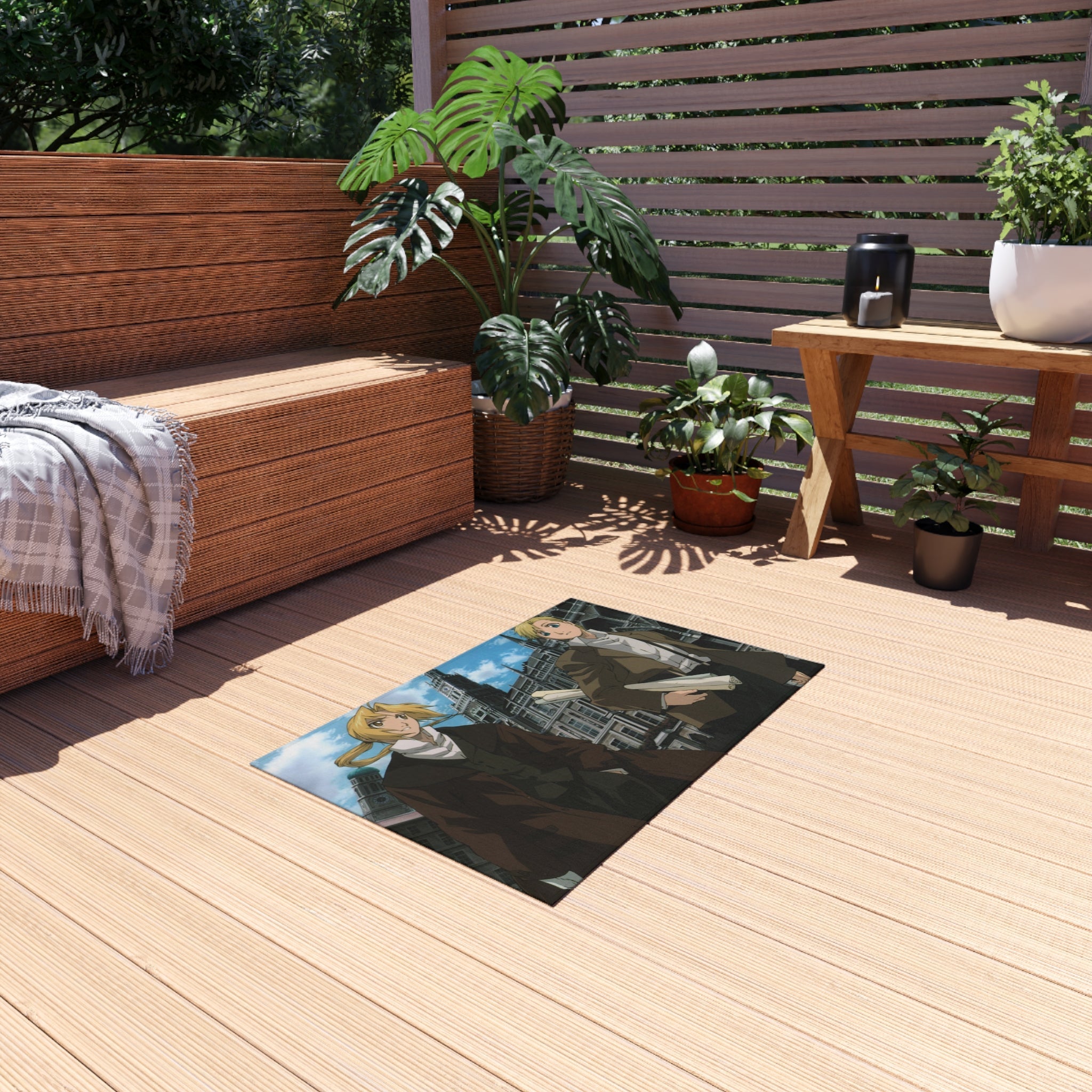 This area rug is crafted with durable construction and hemmed edges, offering lasting quality and style. A coated backing keeps the piece in place, making it the perfect finishing touch for any interior design. Vibrant colors and anime allow you to effortlessly match your existing aesthetic.