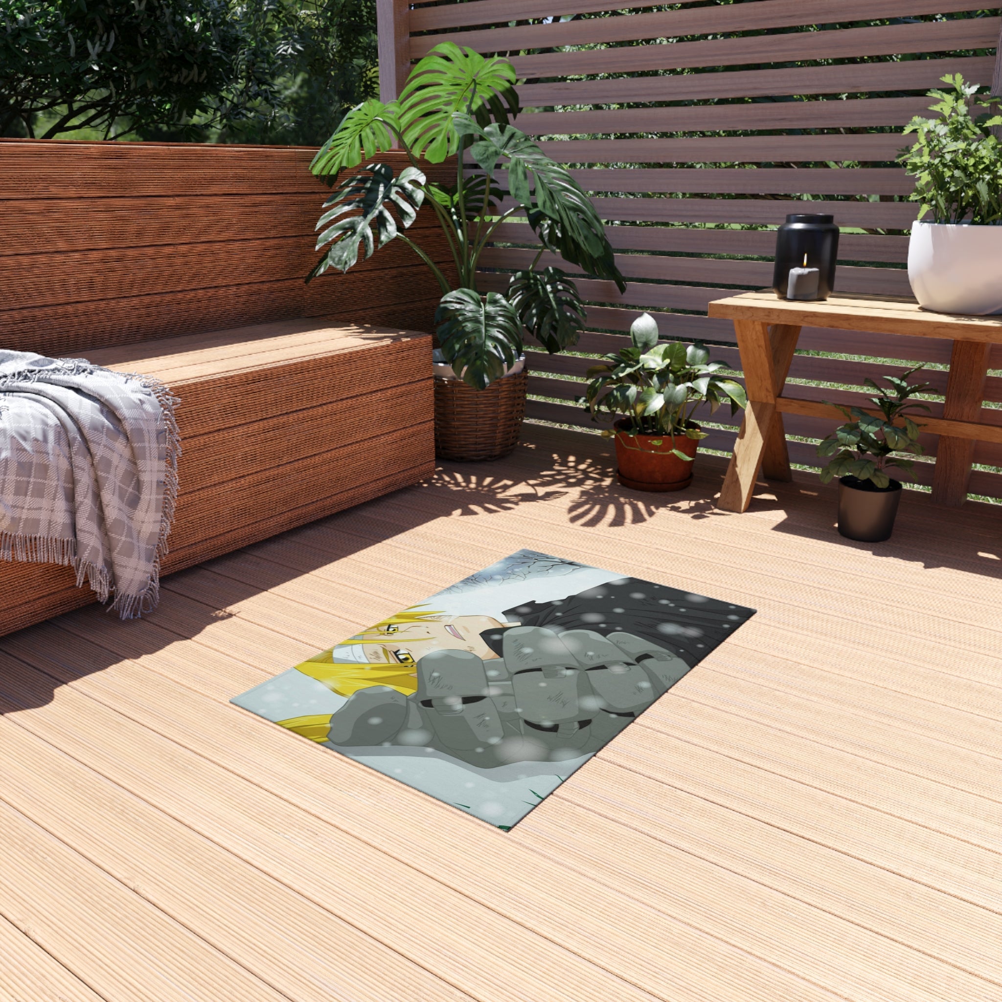 This area rug is crafted with durable construction and hemmed edges, offering lasting quality and style. A coated backing keeps the piece in place, making it the perfect finishing touch for any interior design. Vibrant colors and anime allow you to effortlessly match your existing aesthetic.