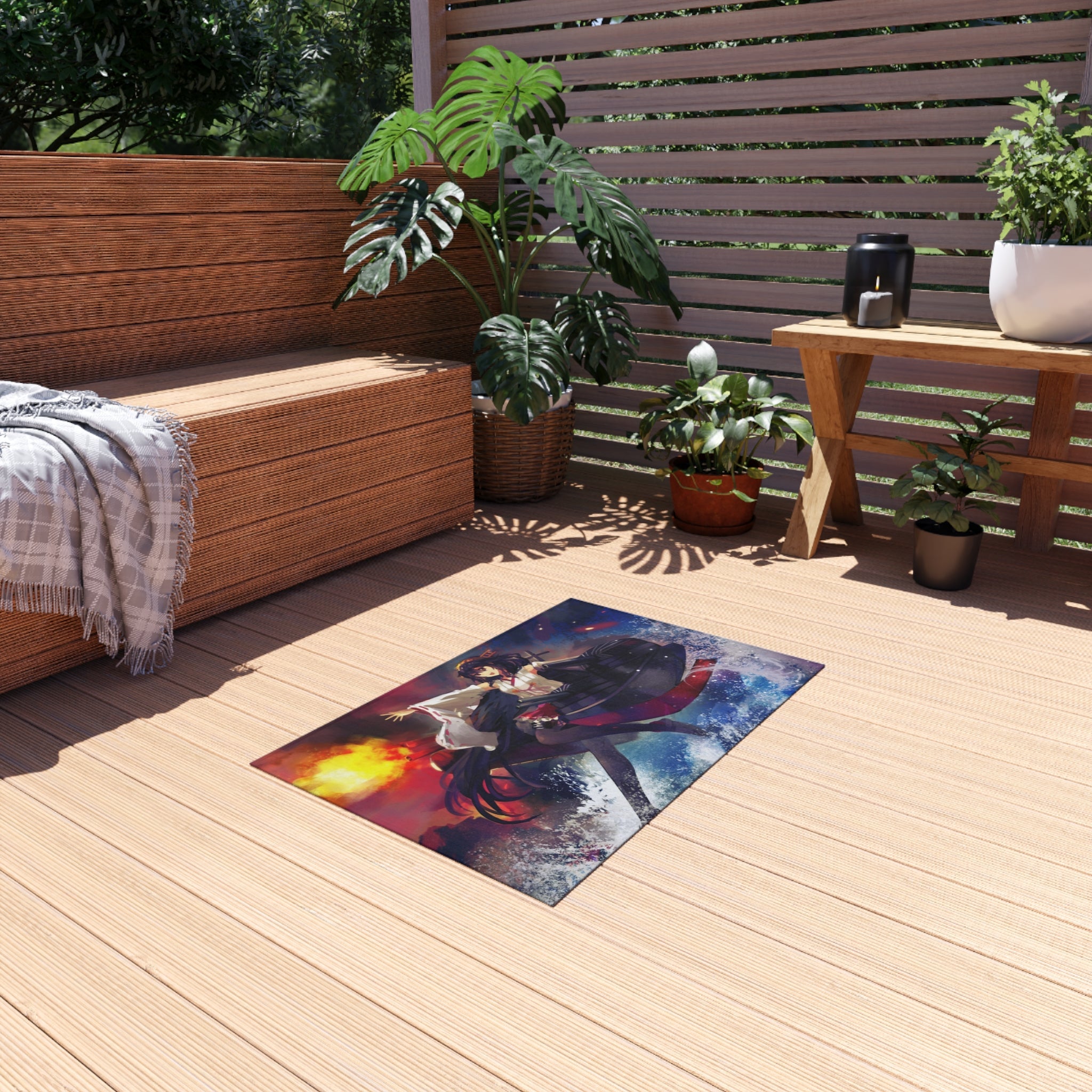 This area rug is crafted with durable construction and hemmed edges, offering lasting quality and style. A coated backing keeps the piece in place, making it the perfect finishing touch for any interior design. Vibrant colors and anime allow you to effortlessly match your existing aesthetic.