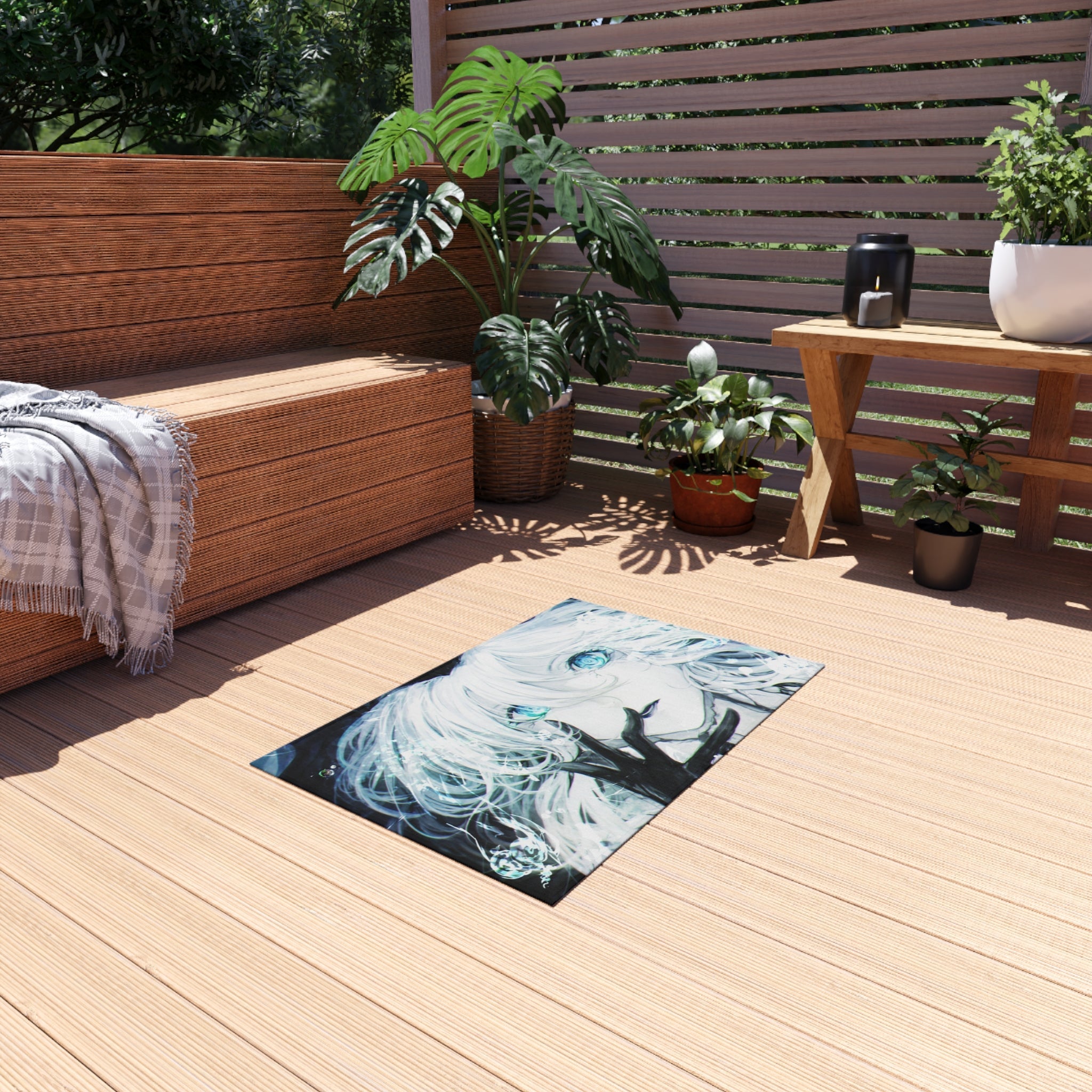 This area rug is crafted with durable construction and hemmed edges, offering lasting quality and style. A coated backing keeps the piece in place, making it the perfect finishing touch for any interior design. Vibrant colors and anime allow you to effortlessly match your existing aesthetic.