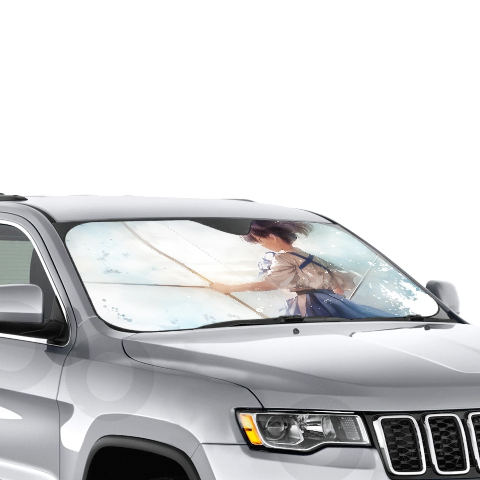 Showcase your favorite anime and protect your car's interior with this premium sunshade that blends vibrant fan art with essential protection.