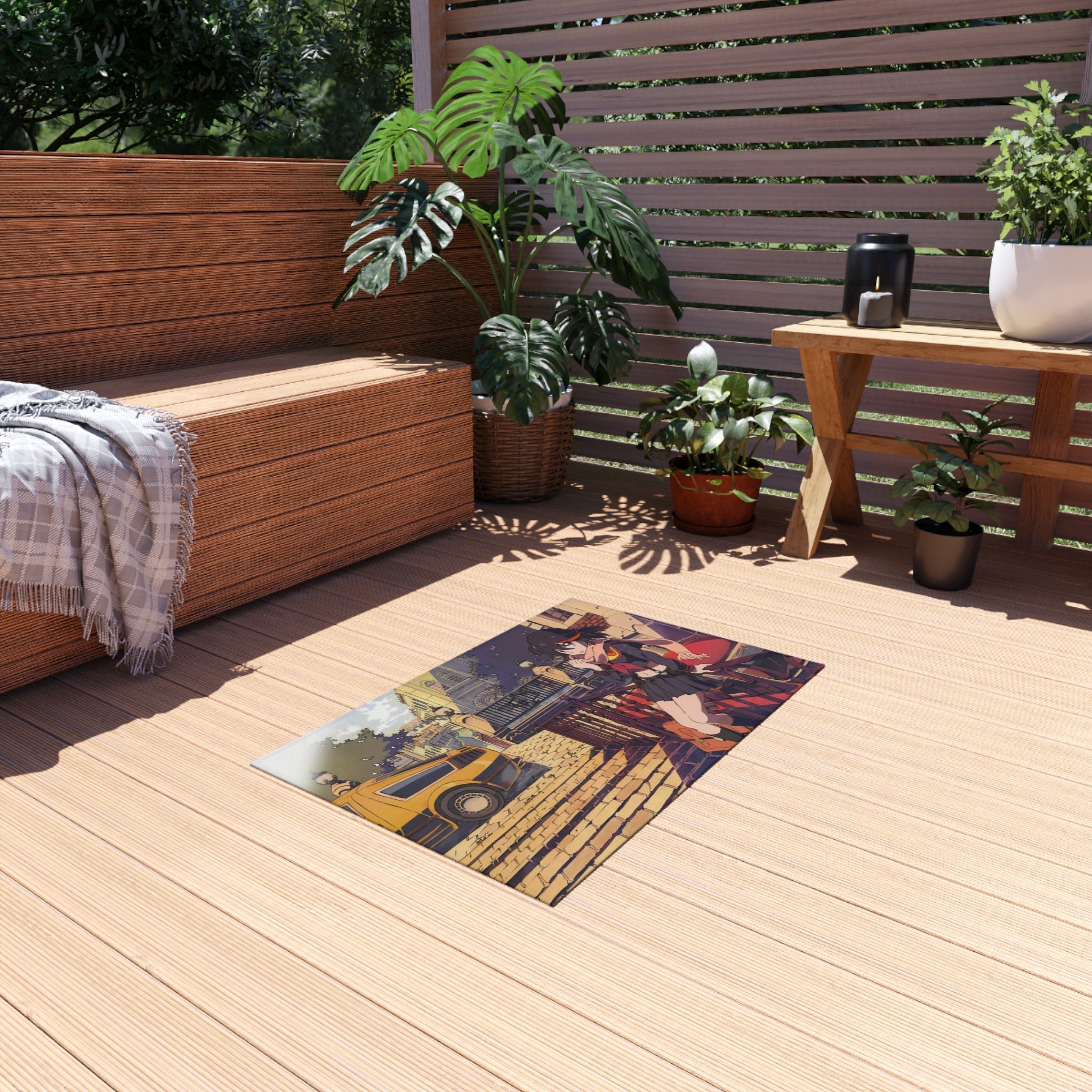 This area rug is crafted with durable construction and hemmed edges, offering lasting quality and style. A coated backing keeps the piece in place, making it the perfect finishing touch for any interior design. Vibrant colors and anime allow you to effortlessly match your existing aesthetic.
