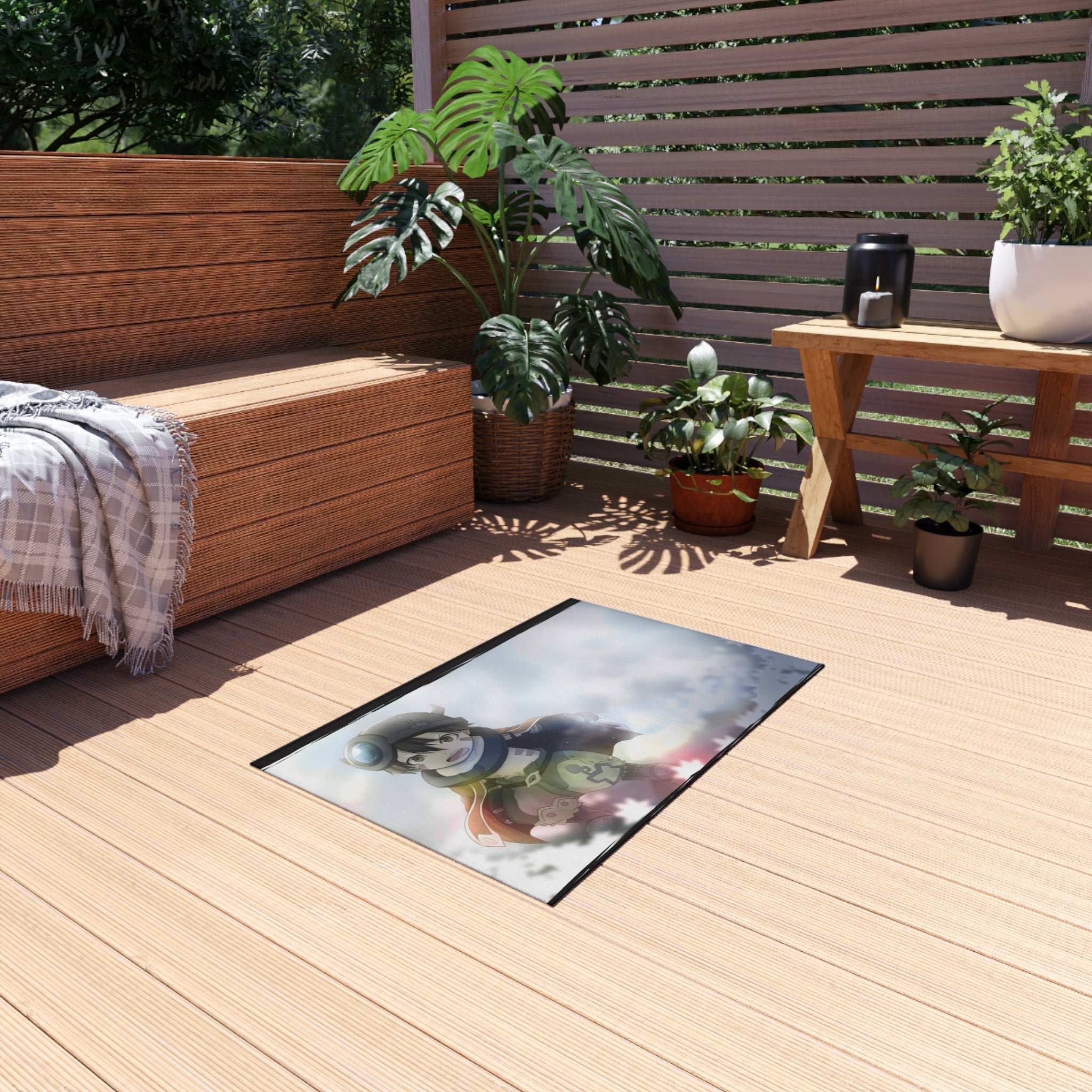 This area rug is crafted with durable construction and hemmed edges, offering lasting quality and style. A coated backing keeps the piece in place, making it the perfect finishing touch for any interior design. Vibrant colors and anime allow you to effortlessly match your existing aesthetic.
