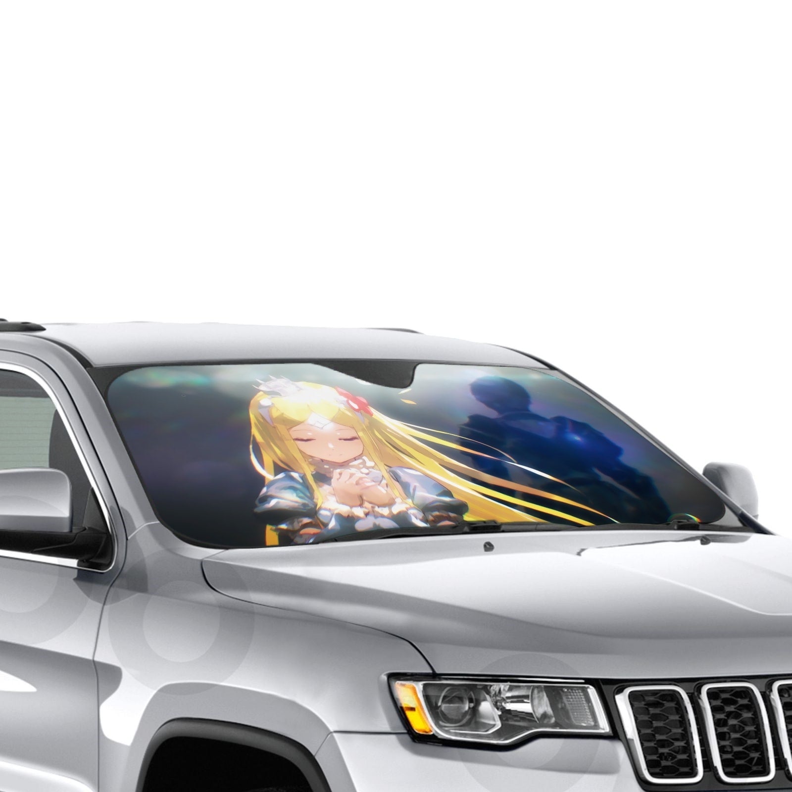 Showcase your favorite anime and protect your car's interior with this premium sunshade that blends vibrant fan art with essential protection.