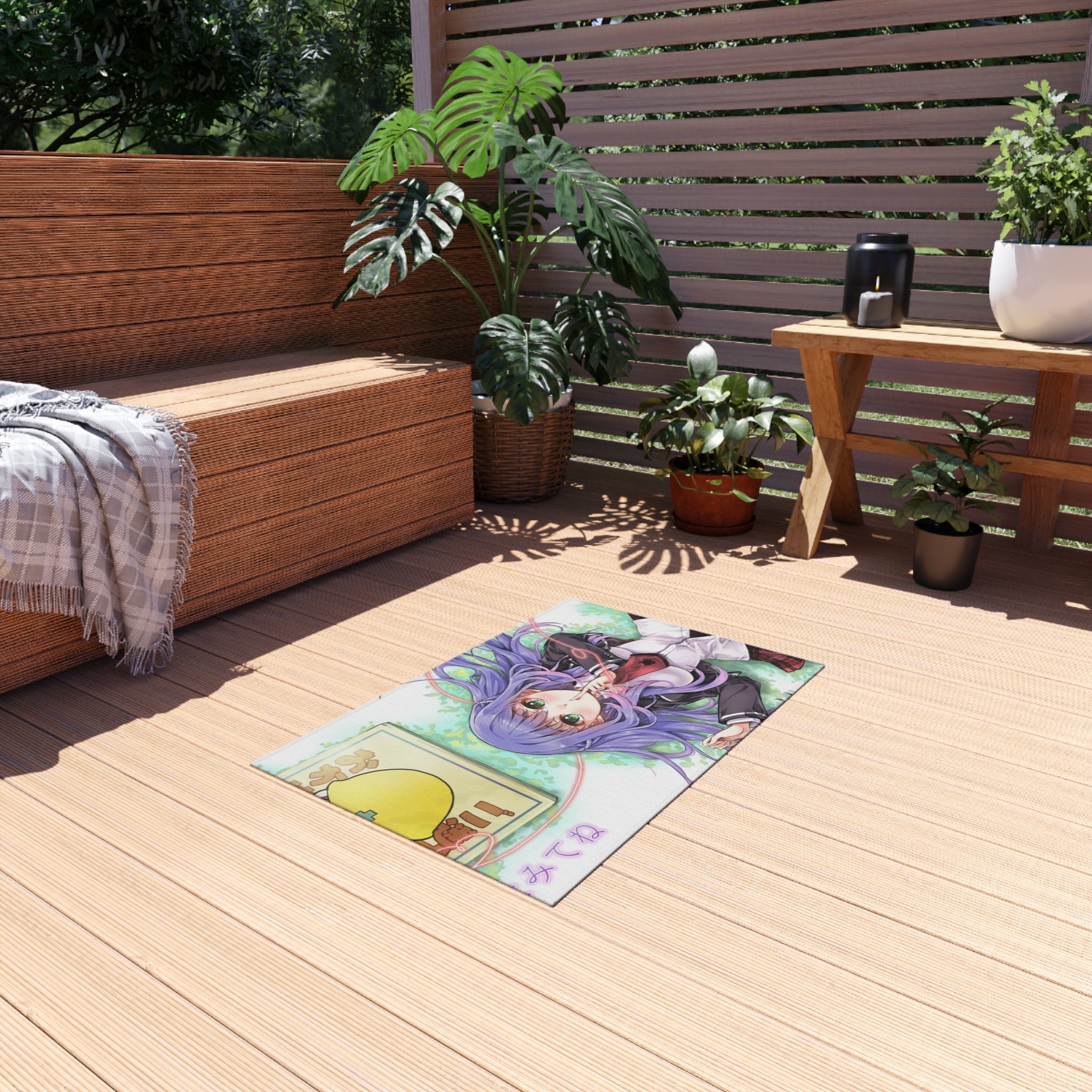 This area rug is crafted with durable construction and hemmed edges, offering lasting quality and style. A coated backing keeps the piece in place, making it the perfect finishing touch for any interior design. Vibrant colors and anime allow you to effortlessly match your existing aesthetic.