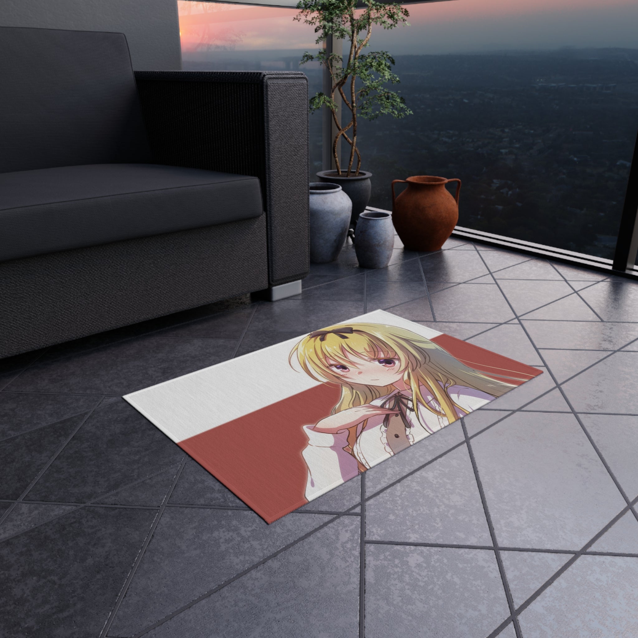 This area rug is crafted with durable construction and hemmed edges, offering lasting quality and style. A coated backing keeps the piece in place, making it the perfect finishing touch for any interior design. Vibrant colors and anime allow you to effortlessly match your existing aesthetic.