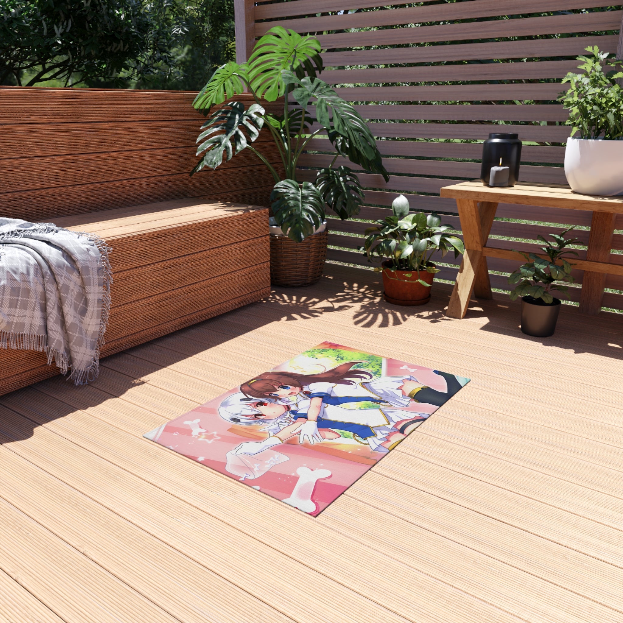 This area rug is crafted with durable construction and hemmed edges, offering lasting quality and style. A coated backing keeps the piece in place, making it the perfect finishing touch for any interior design. Vibrant colors and anime allow you to effortlessly match your existing aesthetic.