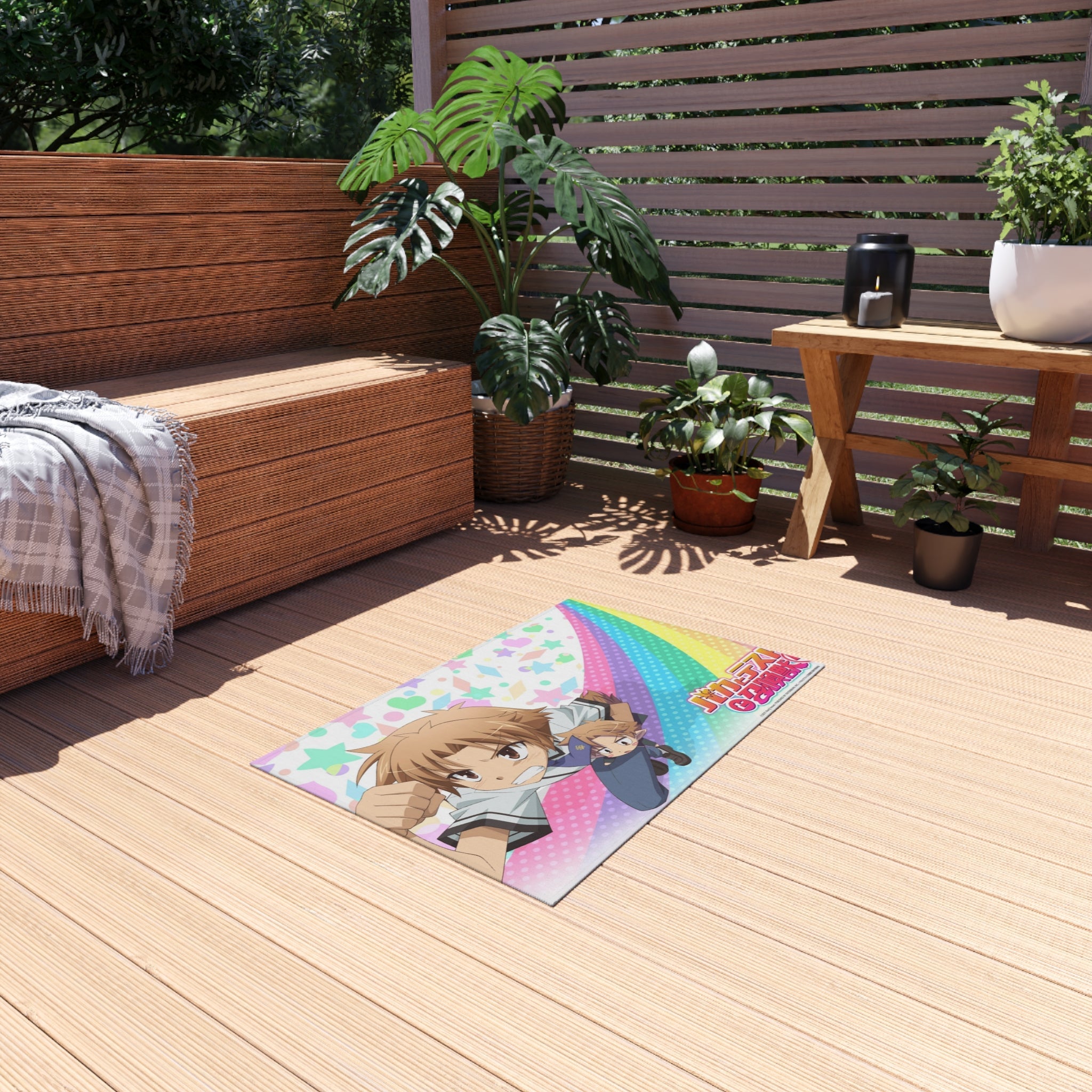 This area rug is crafted with durable construction and hemmed edges, offering lasting quality and style. A coated backing keeps the piece in place, making it the perfect finishing touch for any interior design. Vibrant colors and anime allow you to effortlessly match your existing aesthetic.