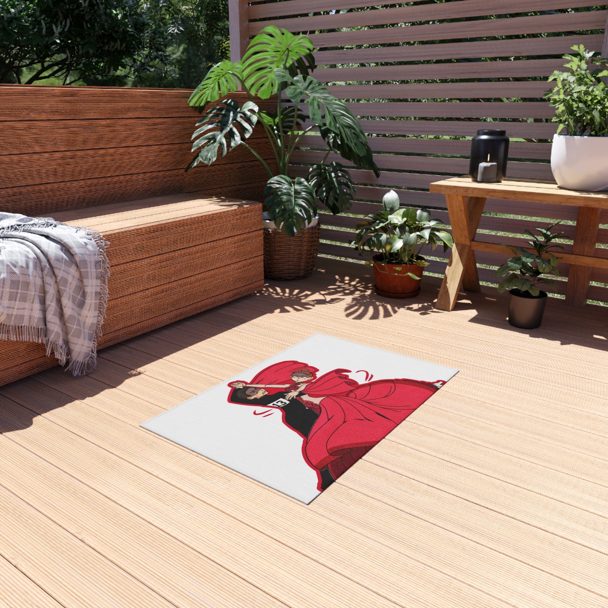 This area rug is crafted with durable construction and hemmed edges, offering lasting quality and style. A coated backing keeps the piece in place, making it the perfect finishing touch for any interior design. Vibrant colors and anime allow you to effortlessly match your existing aesthetic.