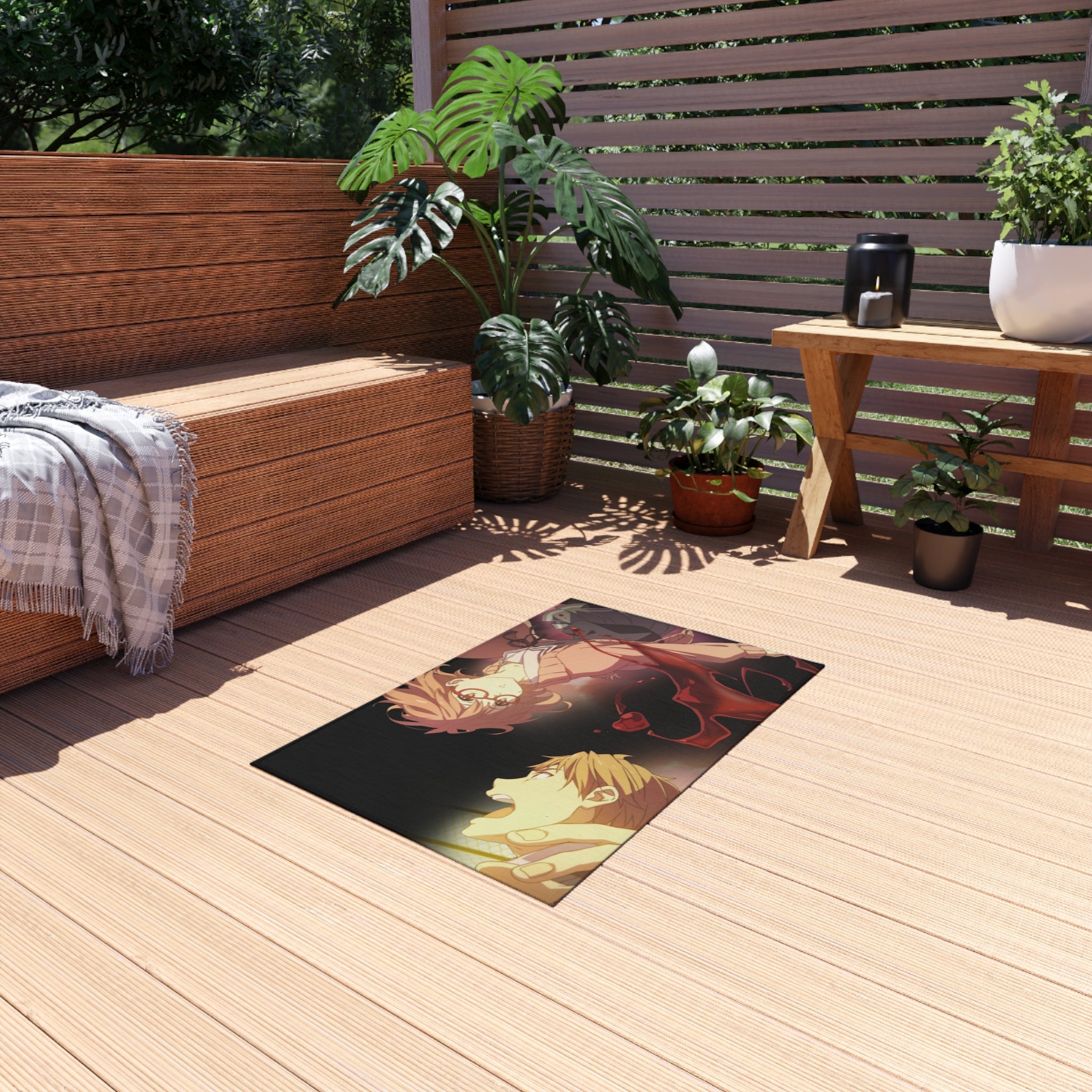 This area rug is crafted with durable construction and hemmed edges, offering lasting quality and style. A coated backing keeps the piece in place, making it the perfect finishing touch for any interior design. Vibrant colors and anime allow you to effortlessly match your existing aesthetic.