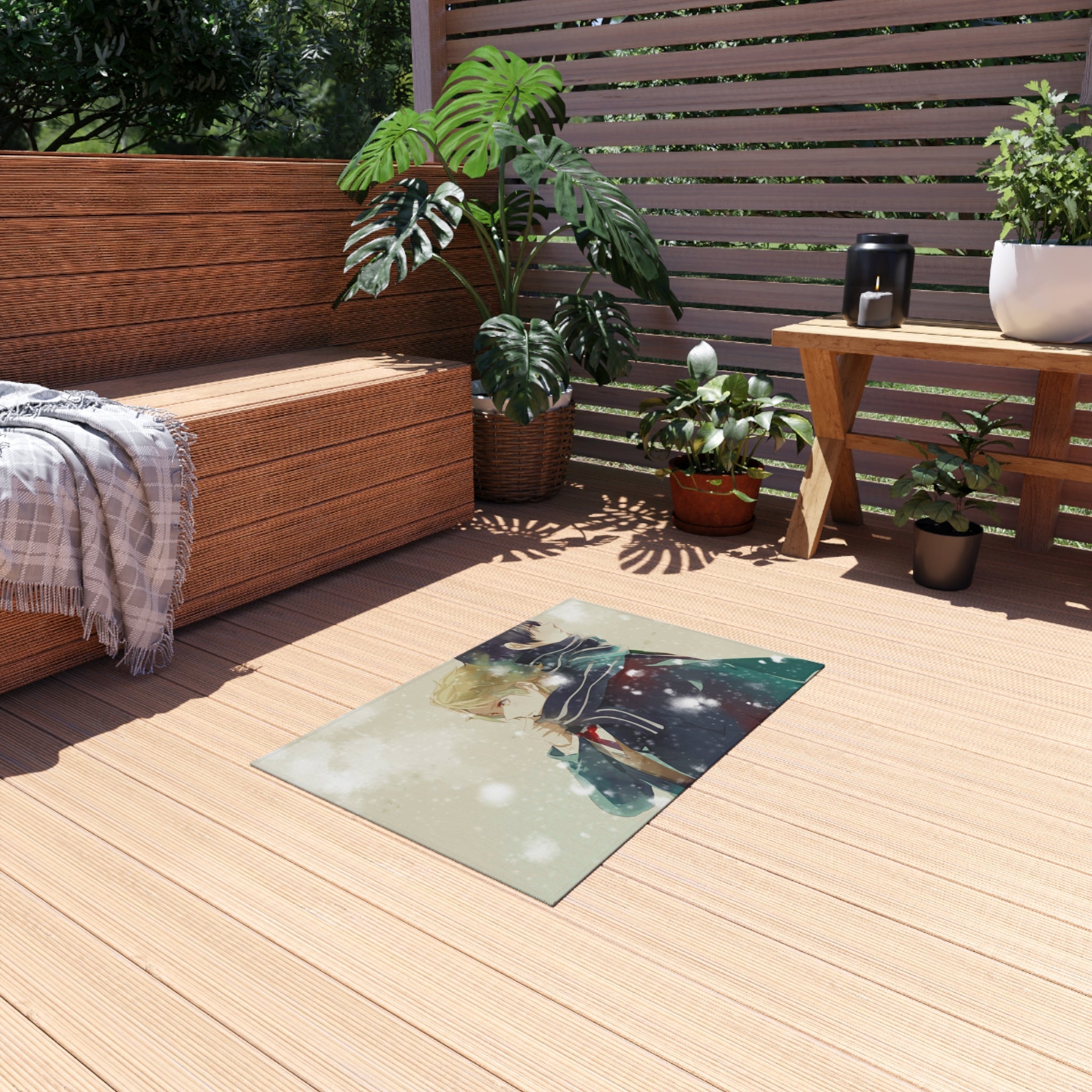 This area rug is crafted with durable construction and hemmed edges, offering lasting quality and style. A coated backing keeps the piece in place, making it the perfect finishing touch for any interior design. Vibrant colors and anime allow you to effortlessly match your existing aesthetic.