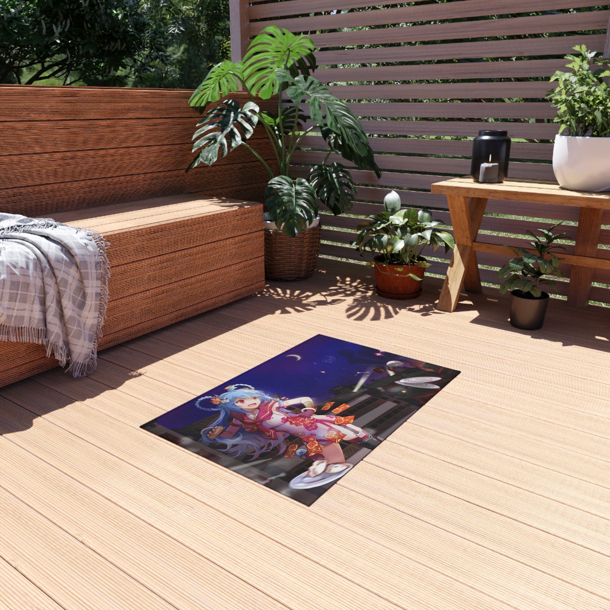 This area rug is crafted with durable construction and hemmed edges, offering lasting quality and style. A coated backing keeps the piece in place, making it the perfect finishing touch for any interior design. Vibrant colors and anime allow you to effortlessly match your existing aesthetic.