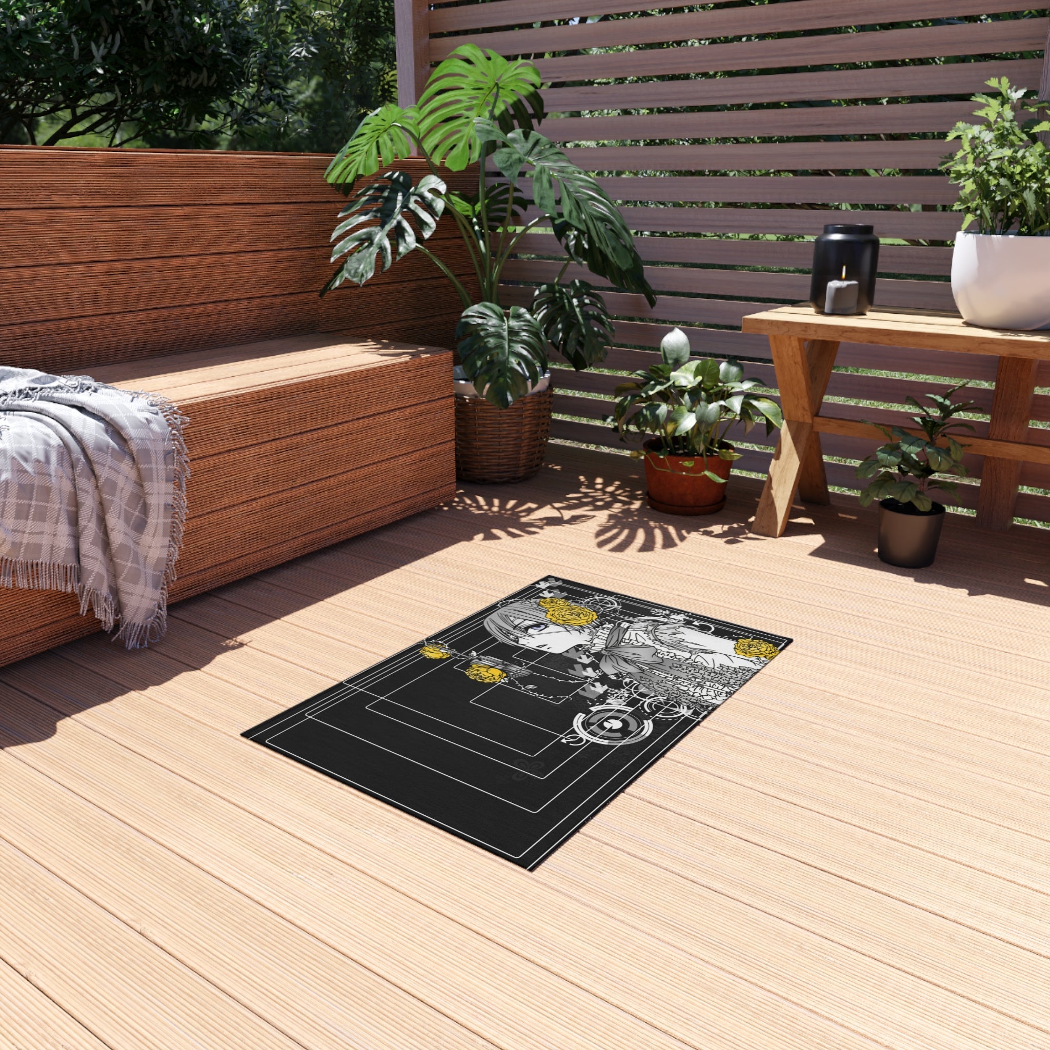 This area rug is crafted with durable construction and hemmed edges, offering lasting quality and style. A coated backing keeps the piece in place, making it the perfect finishing touch for any interior design. Vibrant colors and anime allow you to effortlessly match your existing aesthetic.