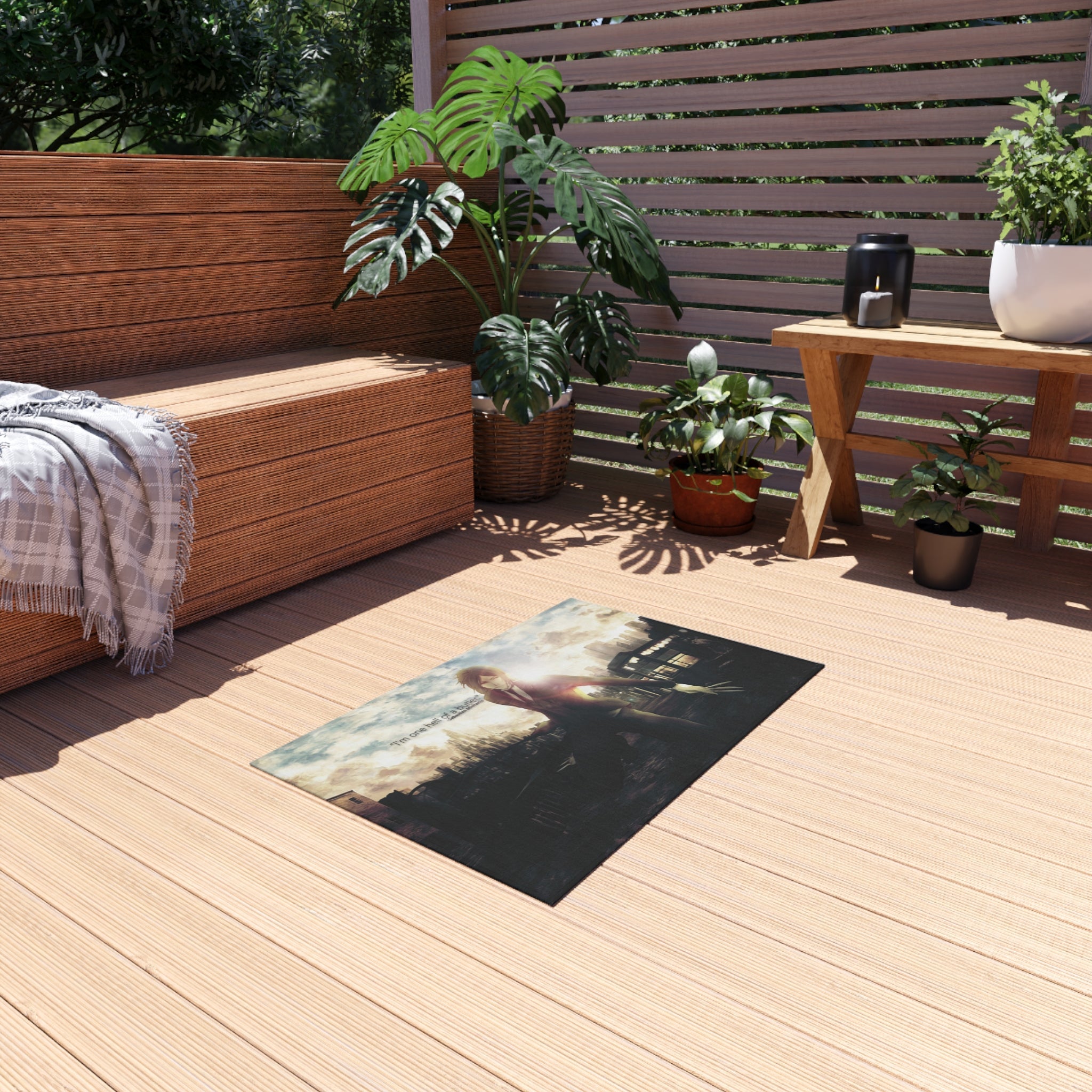 This area rug is crafted with durable construction and hemmed edges, offering lasting quality and style. A coated backing keeps the piece in place, making it the perfect finishing touch for any interior design. Vibrant colors and anime allow you to effortlessly match your existing aesthetic.