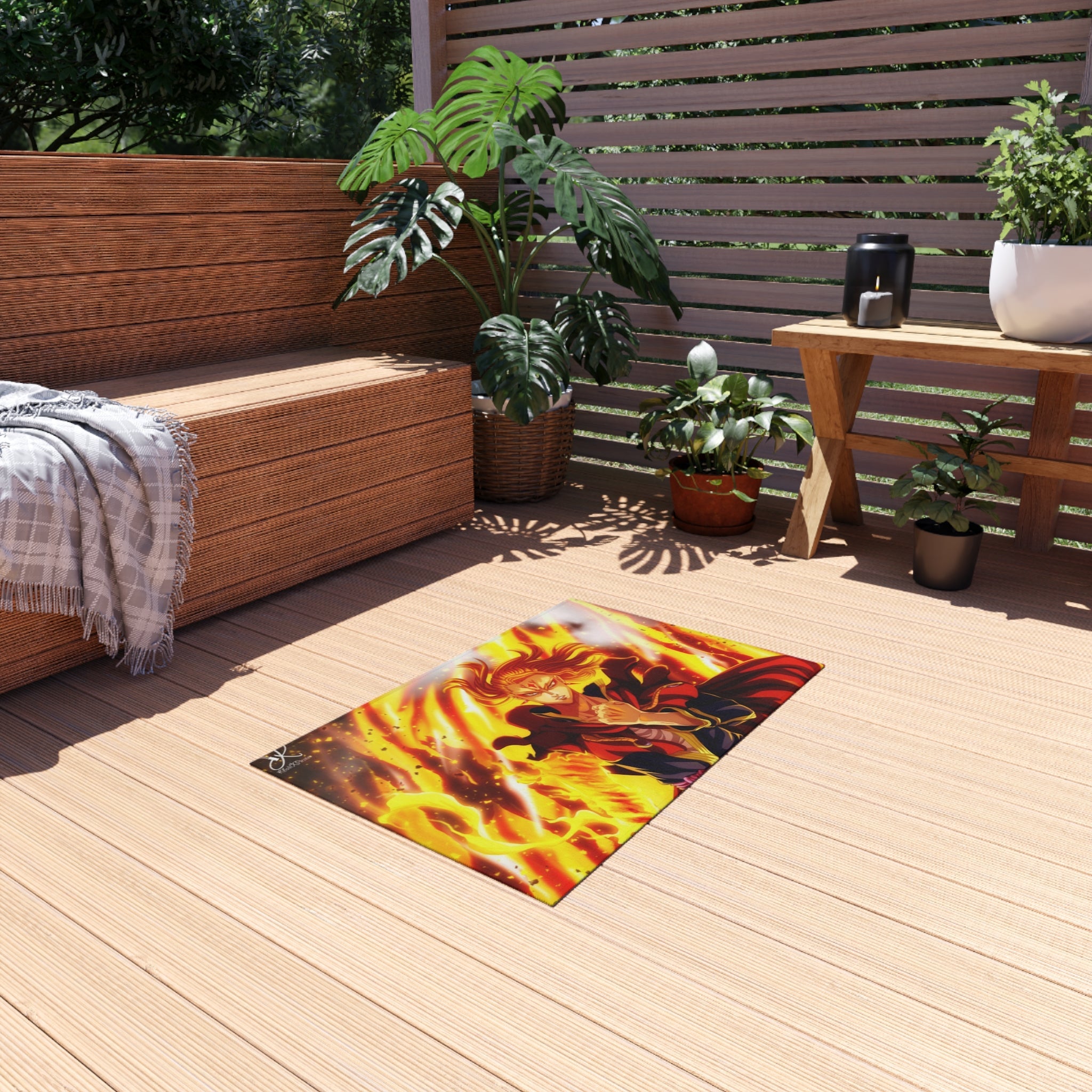 This area rug is crafted with durable construction and hemmed edges, offering lasting quality and style. A coated backing keeps the piece in place, making it the perfect finishing touch for any interior design. Vibrant colors and anime allow you to effortlessly match your existing aesthetic.
