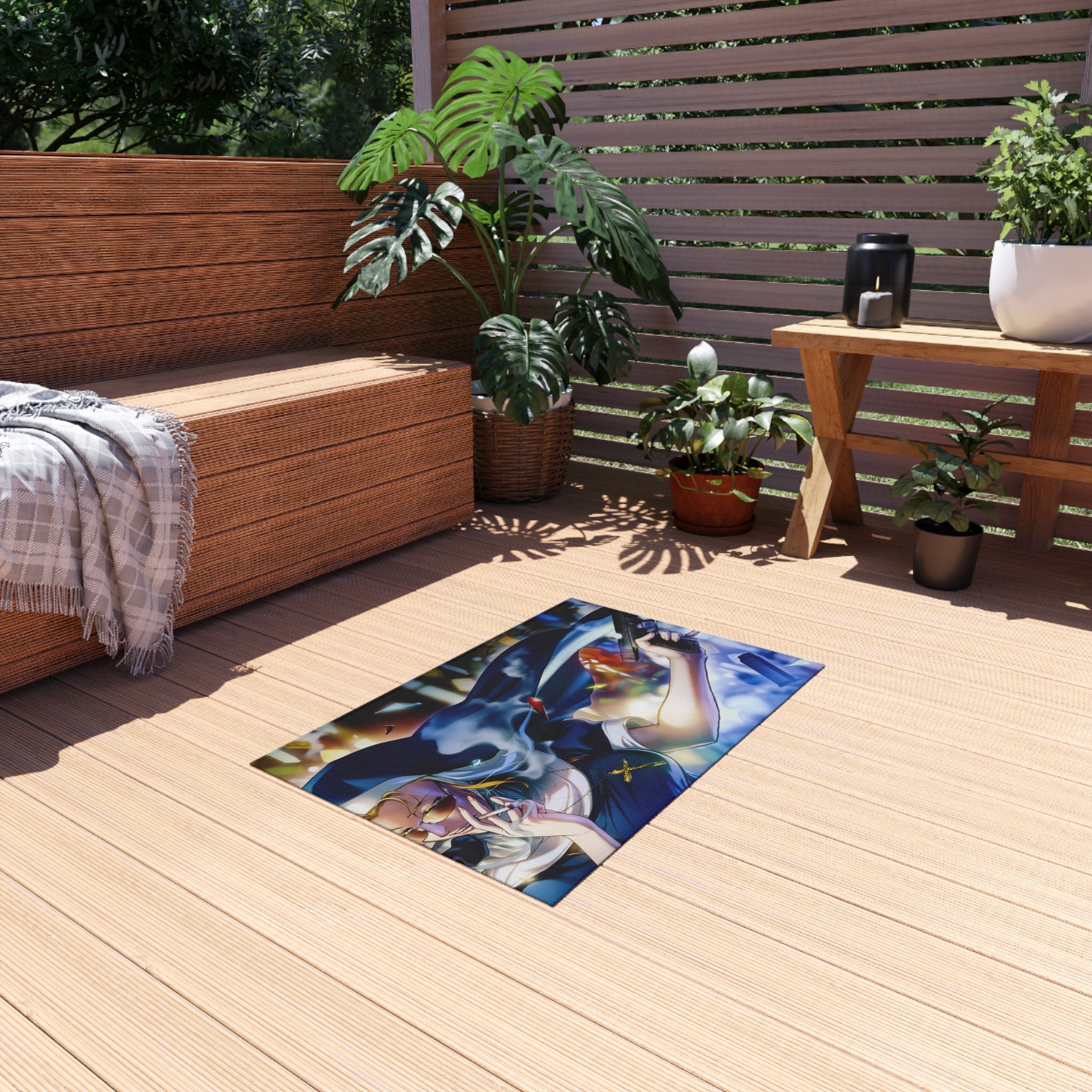 This area rug is crafted with durable construction and hemmed edges, offering lasting quality and style. A coated backing keeps the piece in place, making it the perfect finishing touch for any interior design. Vibrant colors and anime allow you to effortlessly match your existing aesthetic.