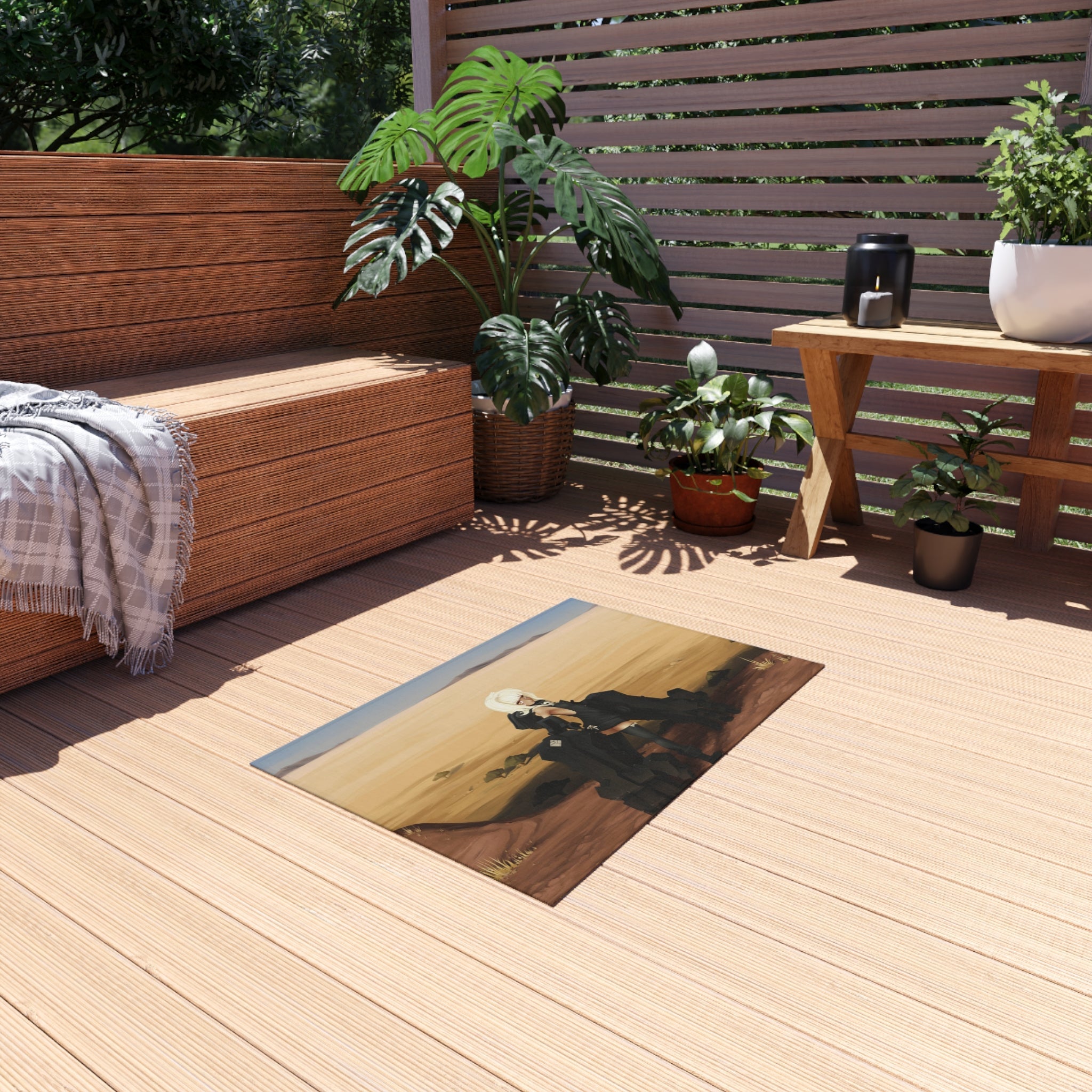 This area rug is crafted with durable construction and hemmed edges, offering lasting quality and style. A coated backing keeps the piece in place, making it the perfect finishing touch for any interior design. Vibrant colors and anime allow you to effortlessly match your existing aesthetic.