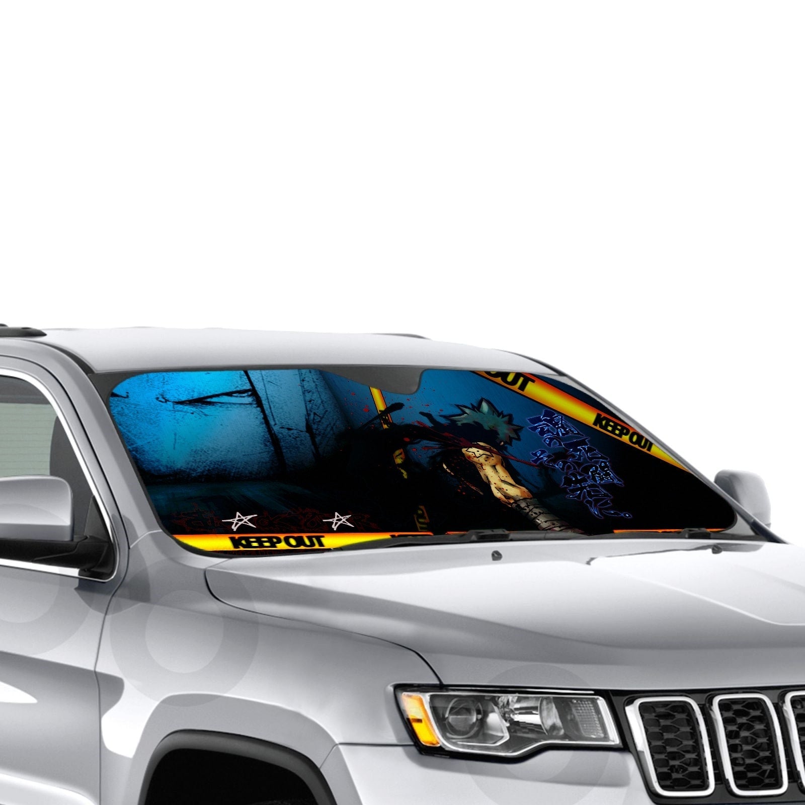 Showcase your favorite anime and protect your car's interior with this premium sunshade that blends vibrant fan art with essential protection.